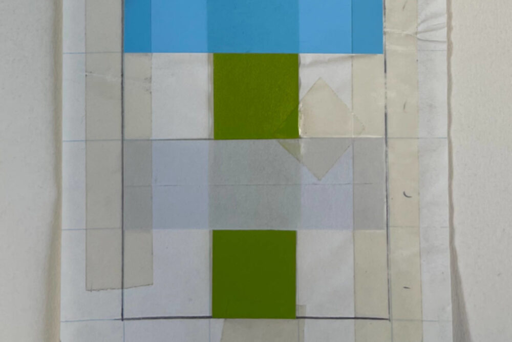 This work shows Reed’s process of putting together shape, color, and space to formulate the Coherence works.