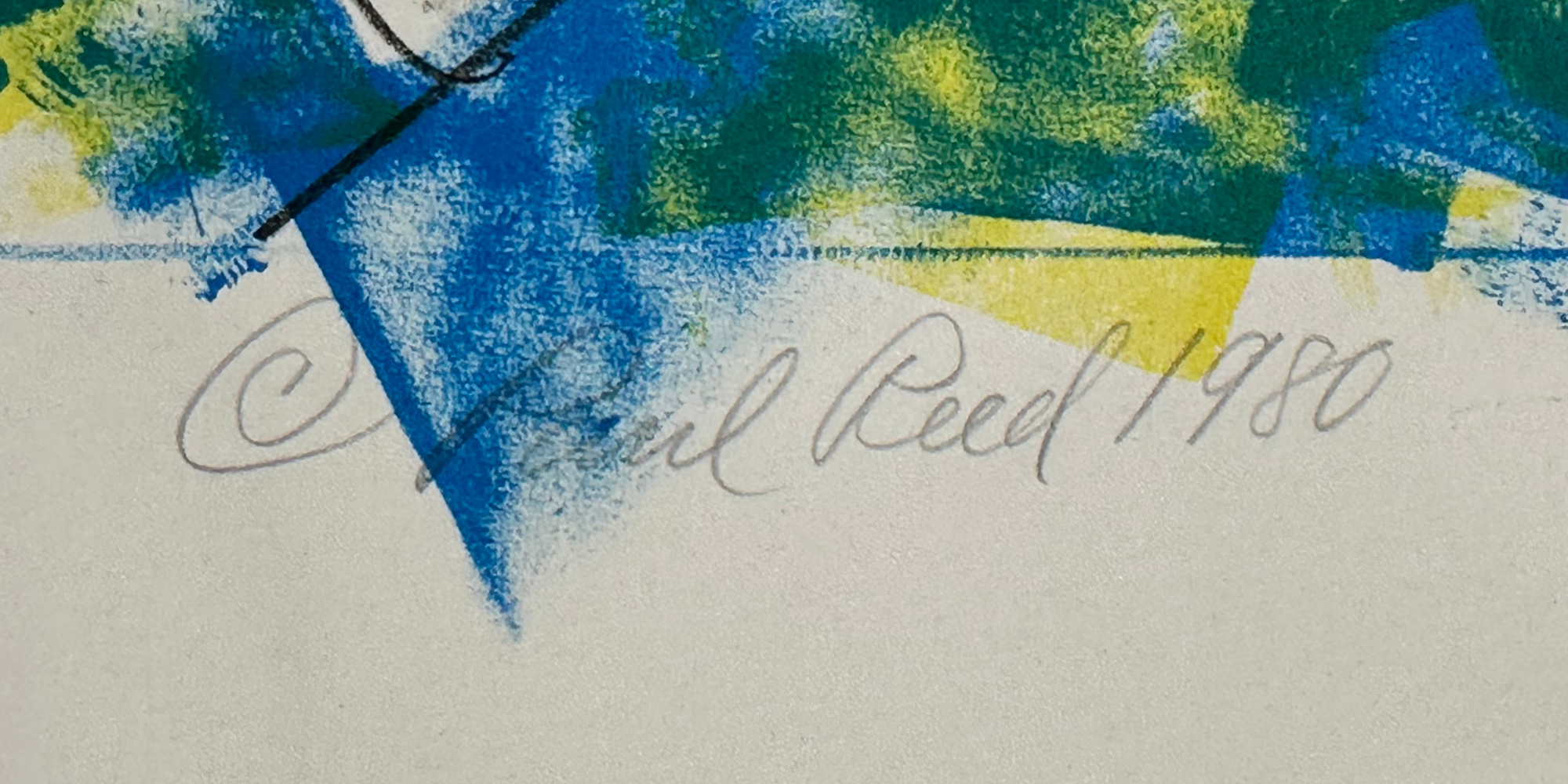This lithograph builds on and evolves from the oil pastels which he began doing in 1973 when he moved from a large studio in Washington back to a small space in his home in northern Arlington. As is almost always true of works by Reed, it is as much about color as it is about shape and space.