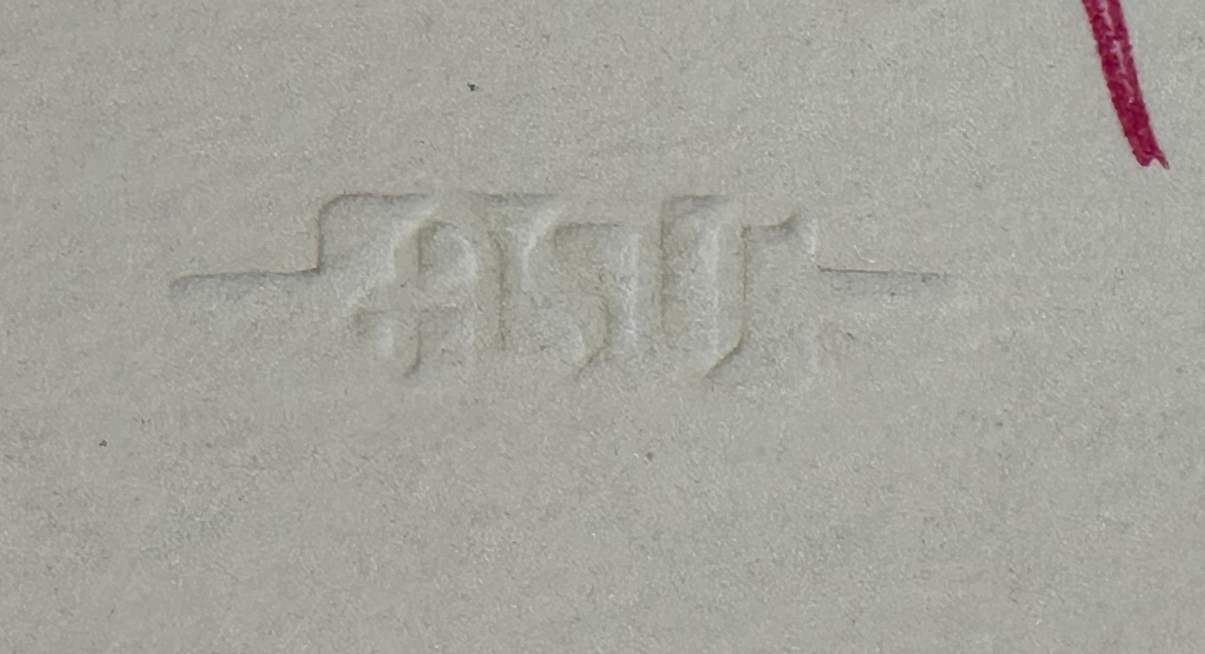 Professionally framed using strictly conservation-grade materials in a custom-made aluminum frame with seamless corners of the sort invented by New York frame maker Robert Kulicke behind 99% UV-blocking art glass.