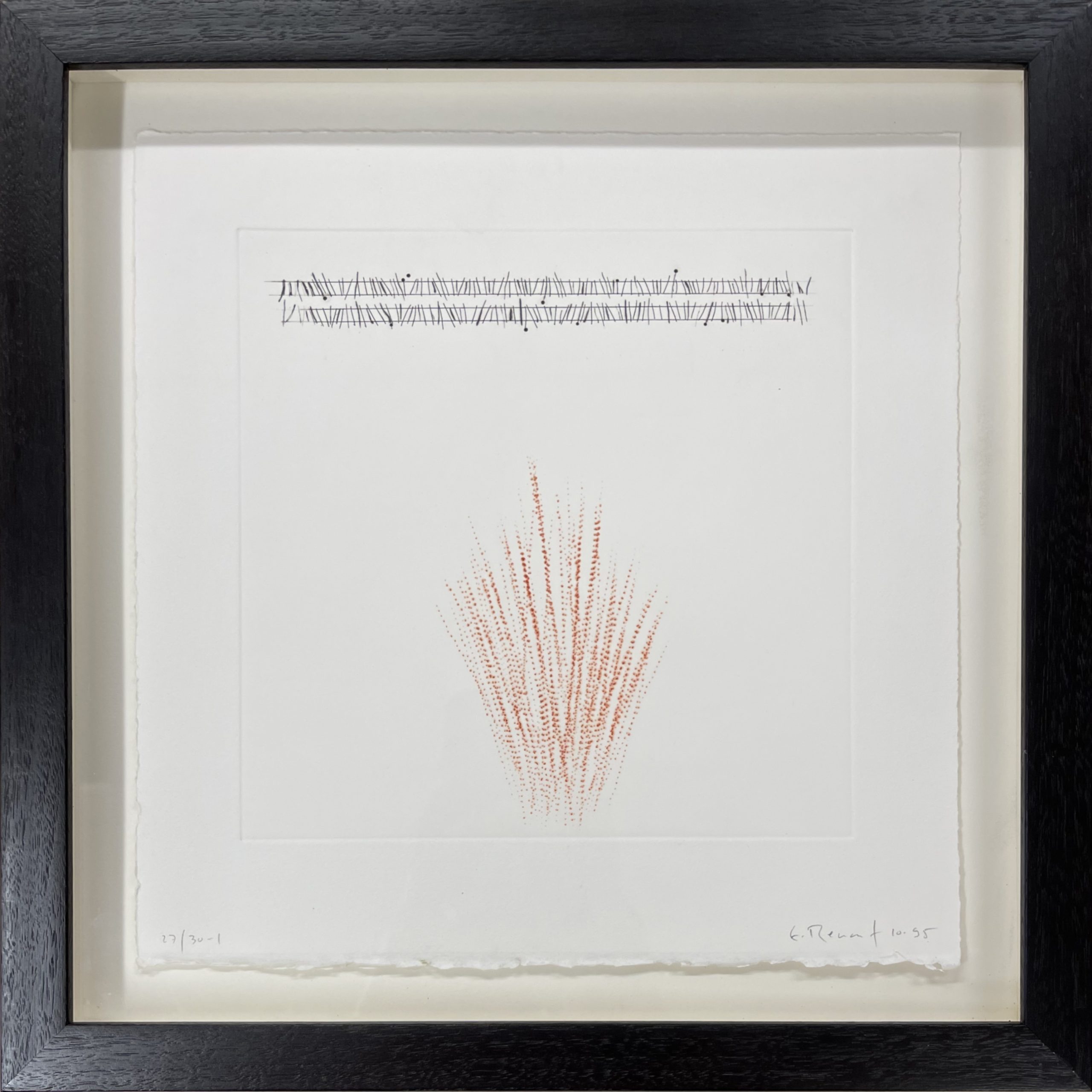 This work was printed by Marc Leclercq at Atelier Tanguy Garric, Paris. In addition to the edition of 30, there were printed 5 Artist’s Proofs, 1 trial proof, and 1 copy reserved for the Bibliotheque Nationale.