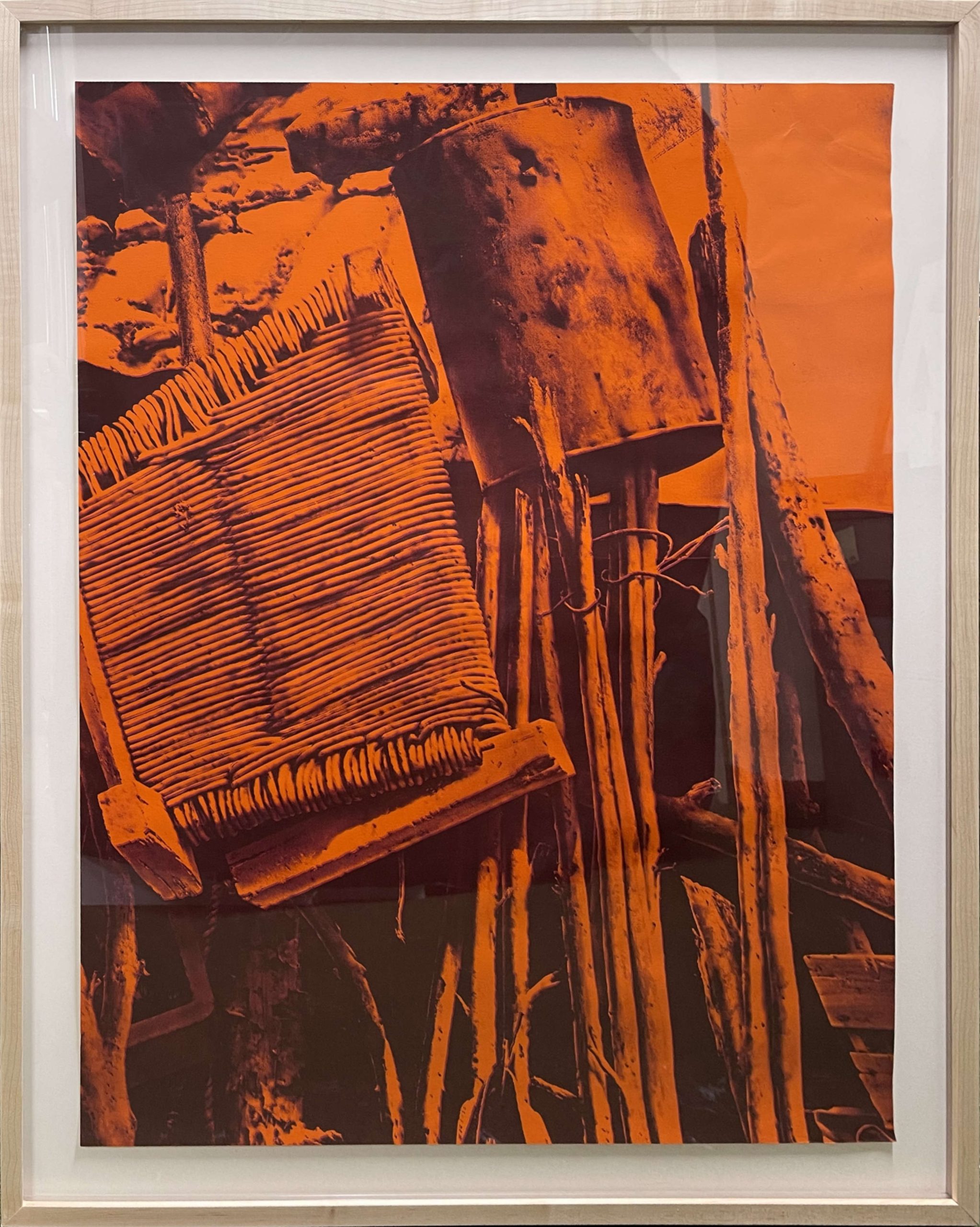 Custom framed in clear-finished Maple behind 99% UV-filtering Plexiglass. All conservation materials.