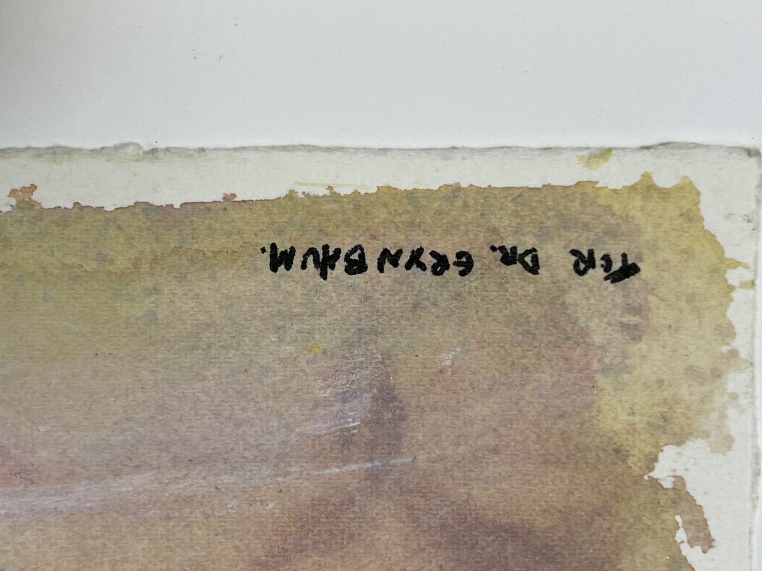 Hand-signed by artist en recto lower right. Inscribed “for Dr. Grynbaum” en recto lower left.