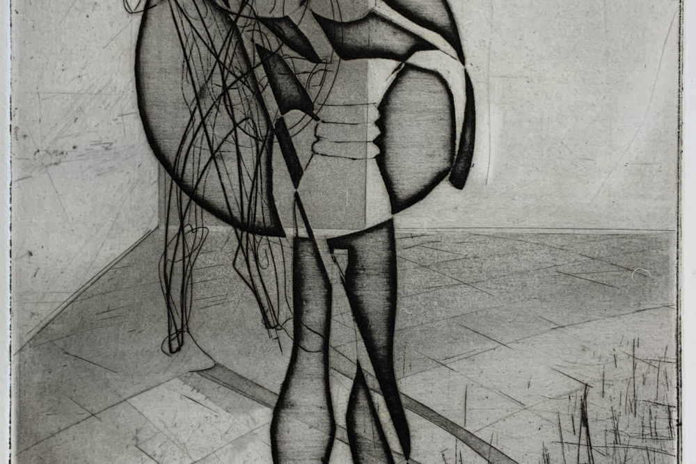 Skæän Gates, an Intaglio engraving, the fourth of the nine intaglios by Stanley William Hayter that illustrate the book-length poem Death of Hektor by Irish poet Brian Coffey.