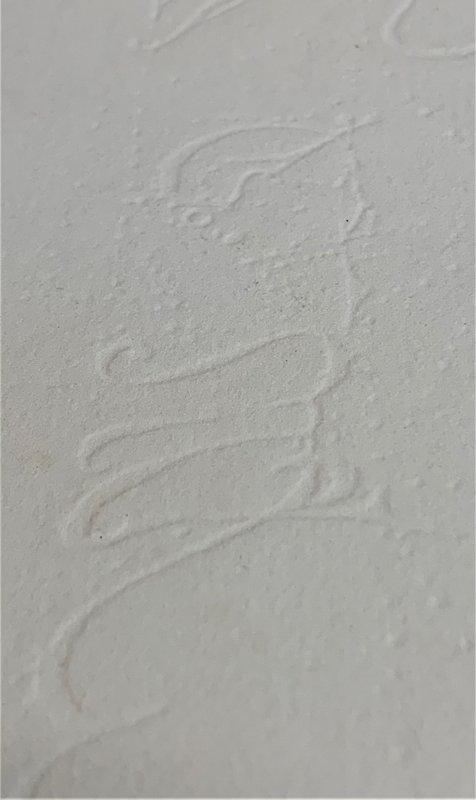 Intaglio print, on previously-embossed paper, then hand-painted.