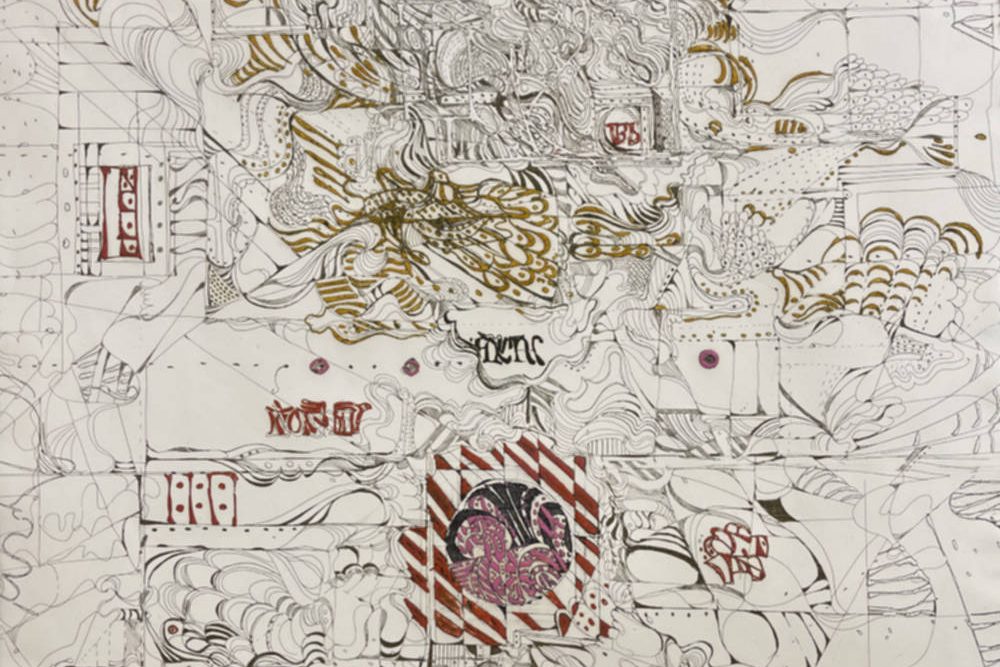 Polish-born printmaker Krystyna Smiechowska draws her inspiration from ancient maps and inscriptions and Slavic manuscripts from the High Middle Ages. She constructs abstract works in which the ancient writings and runes are integrated into the drawing and confer an aura of mystery to the work.
