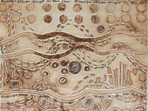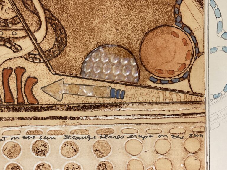 Hand-Pulled unique Intaglio Monoprint (i.e., only one impression was made) with Collage and Drawing.