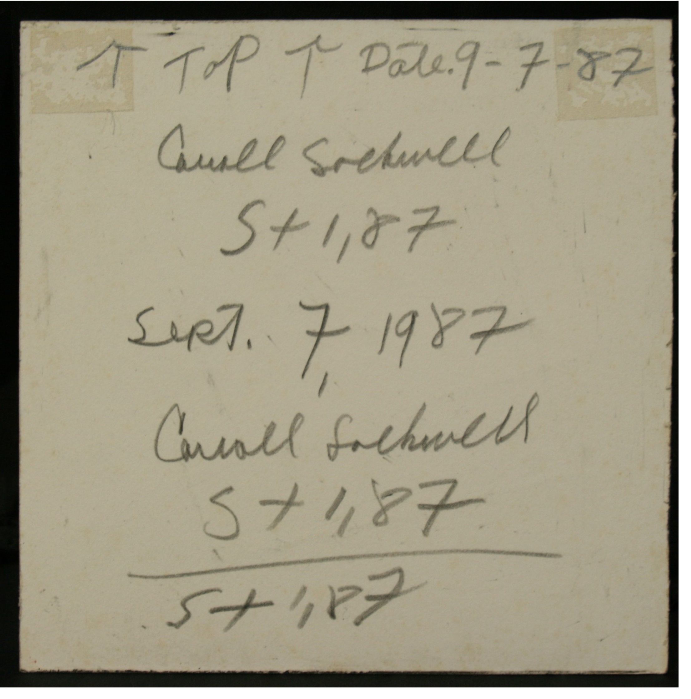 Framed in walnut using archival materials. Artist’s signature, title, and a drawing on former backing board visible en verso protected by an acrylic sheet.