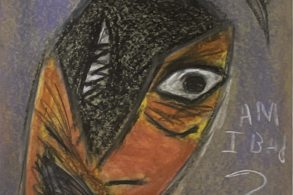 Oil pastel on paper.