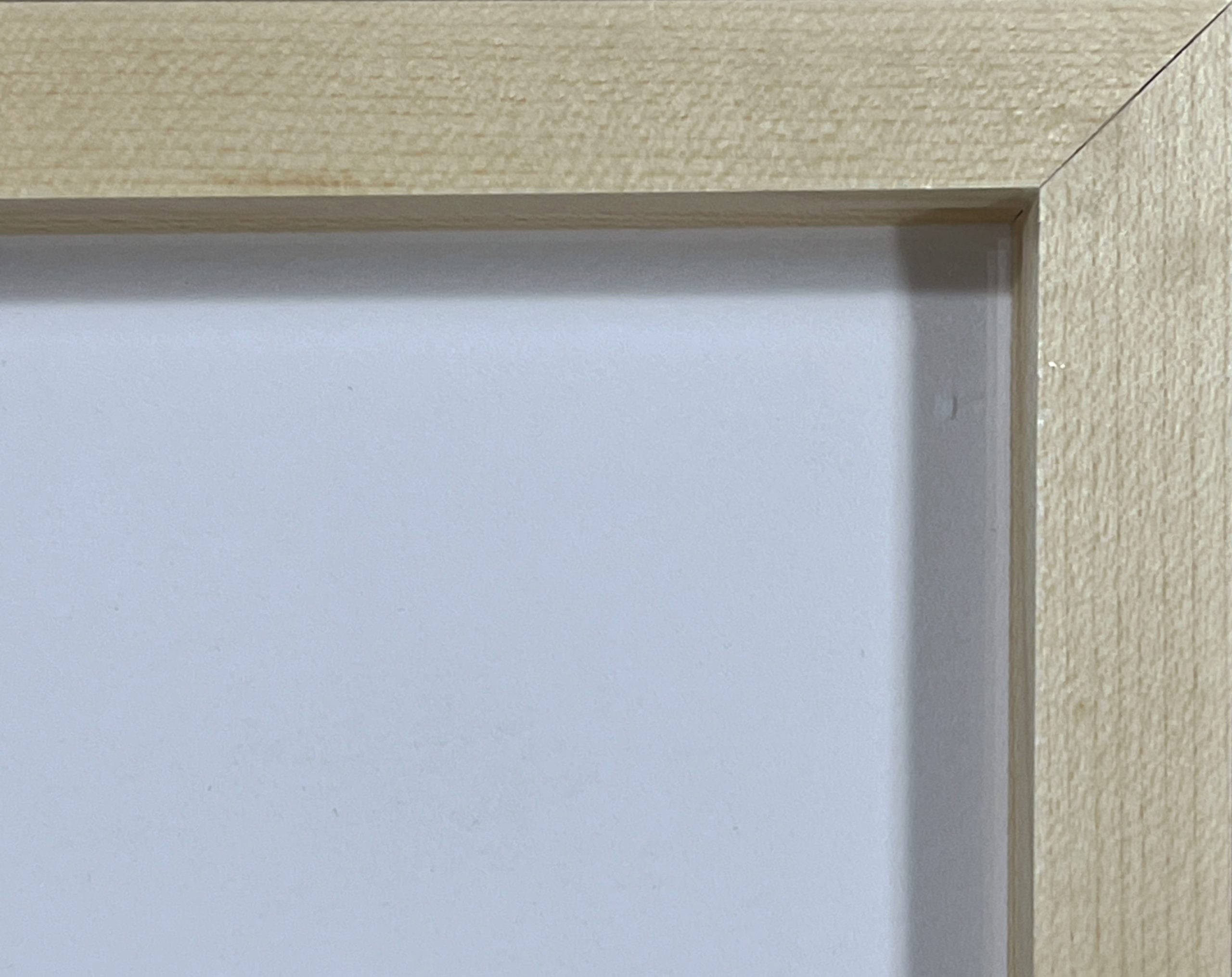 Professionally float-framed in a solid maple frame with an oil & wax finish behind 99% UV-blocking conservation glass, lifted off the work with maple spacers, and with a strainer for stability. Framed with all strictly conservation-grade materials.