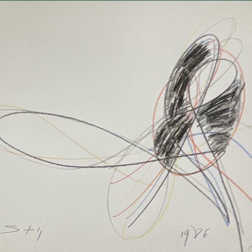 Framed in walnut using archival materials.  Artist’s signature, title, and a drawing on former backing board visible en verso protected by an acrylic sheet.