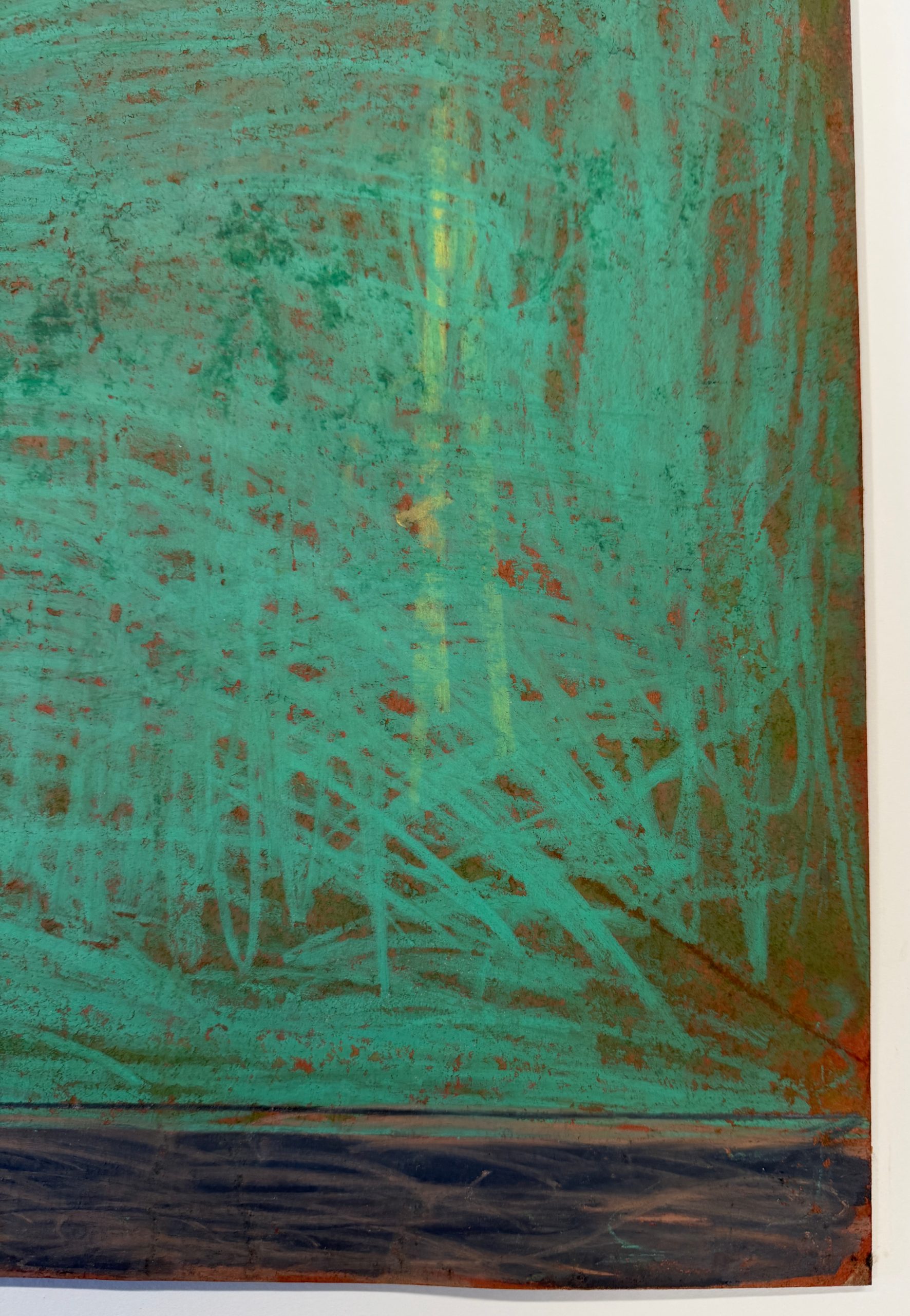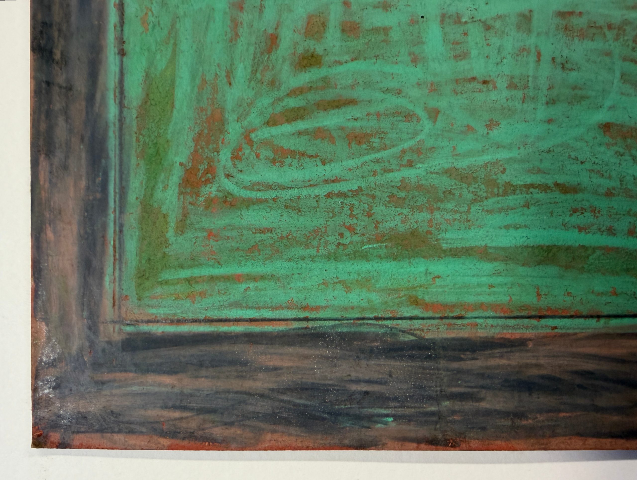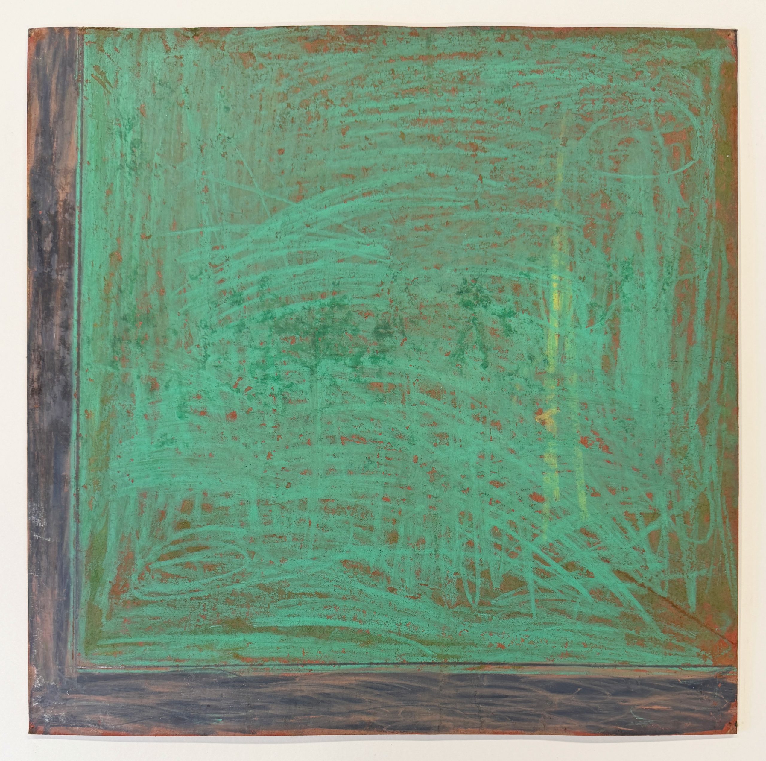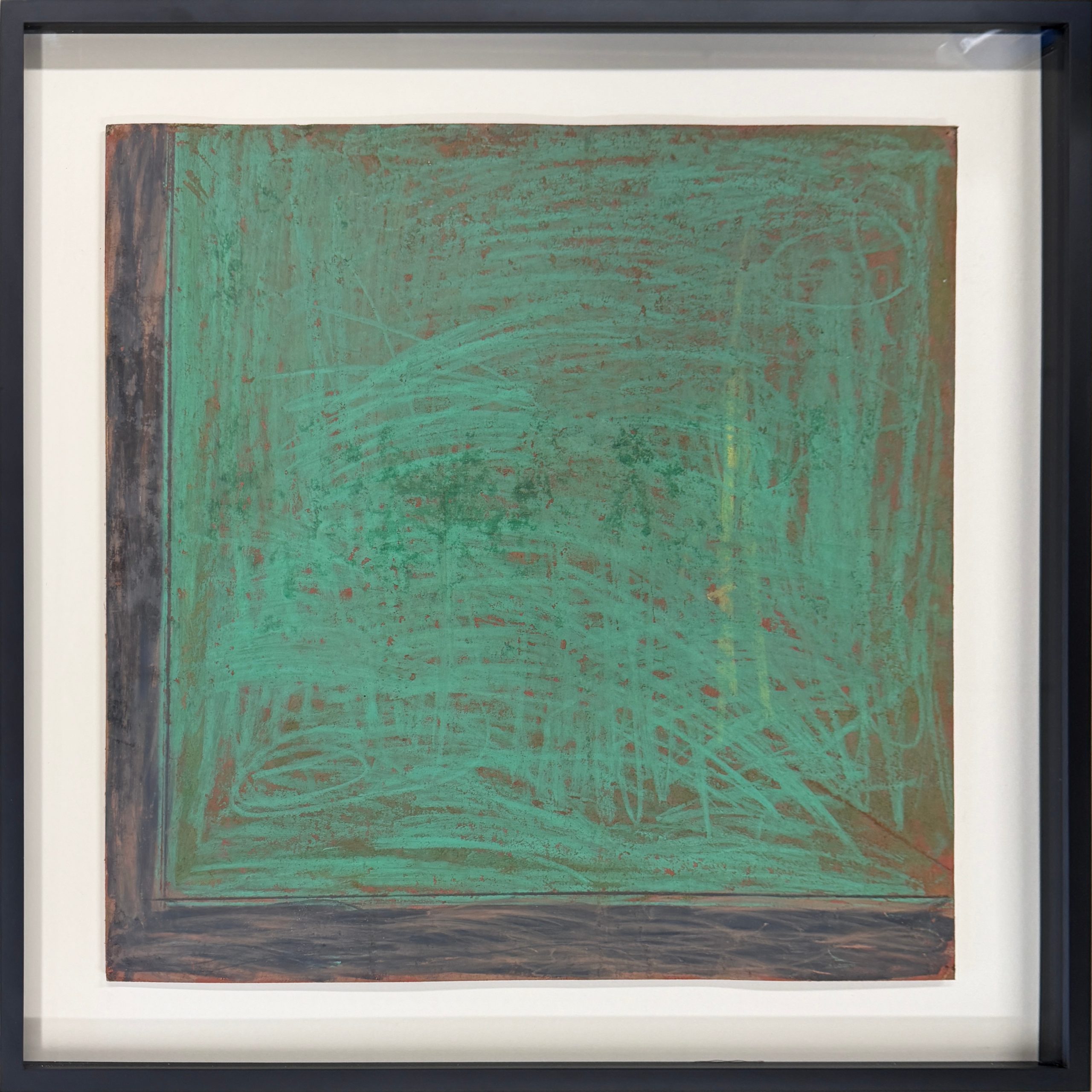 Probably an early work, preceding the Artist’s participation in the difficult Whitney exhibition of works by Black artists which seemed to galvanize Sockwell’s interest in notions of Black art, marked primarily by his Mirror Compositions. This work, an abstract expressionist and color field work does not appear to have the political or cultural commentary seen in some of his later works–and in some ways is all the more powerful for it, likely being a relatively early expression of abstraction in Sockwell’s work.