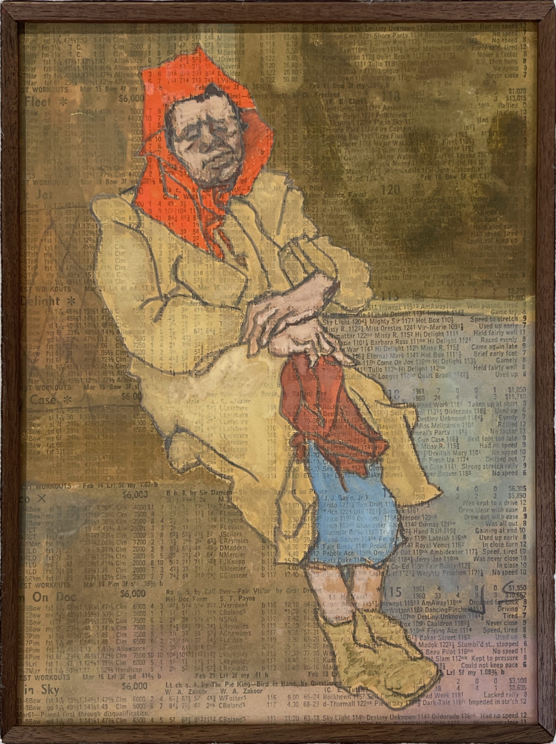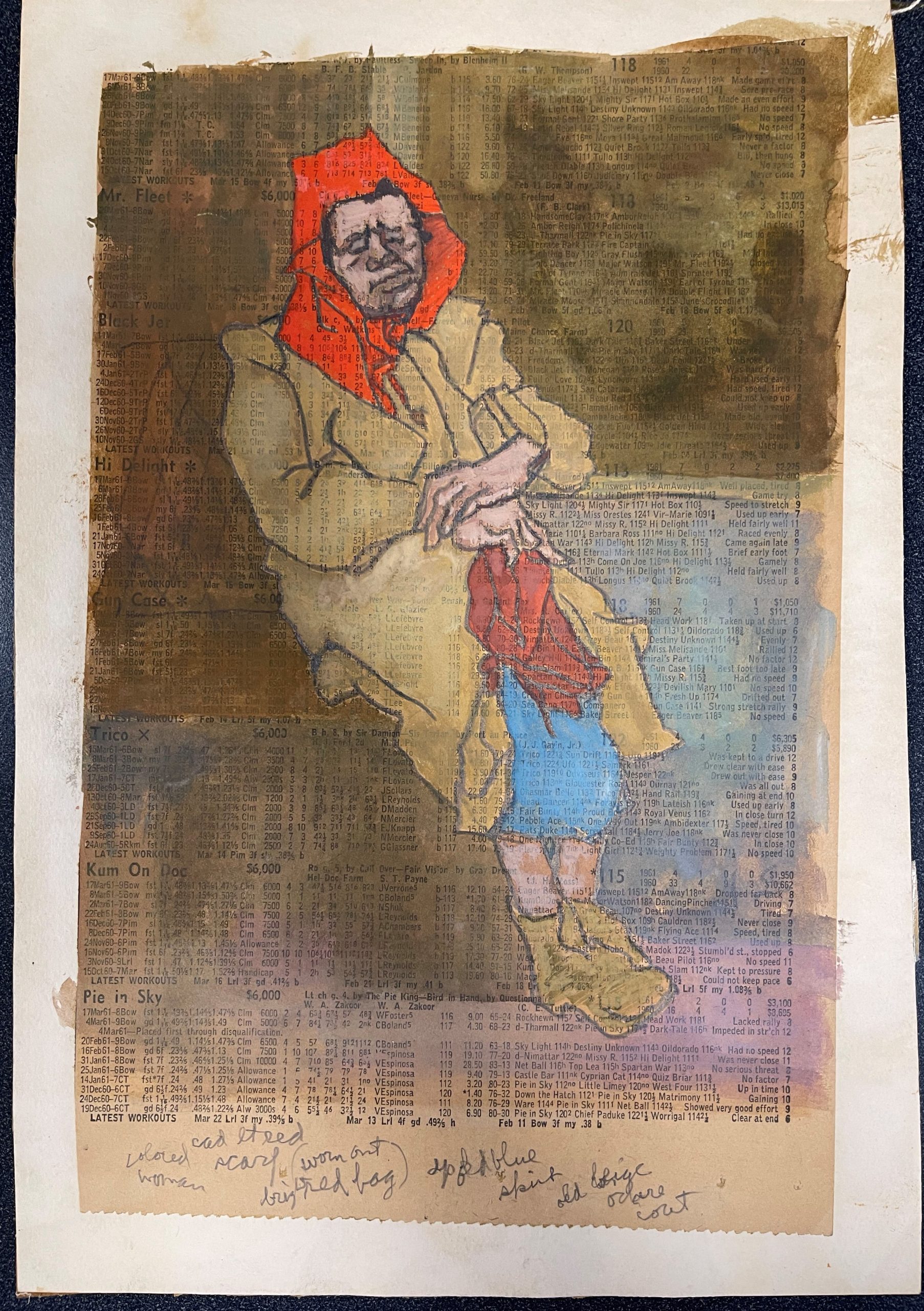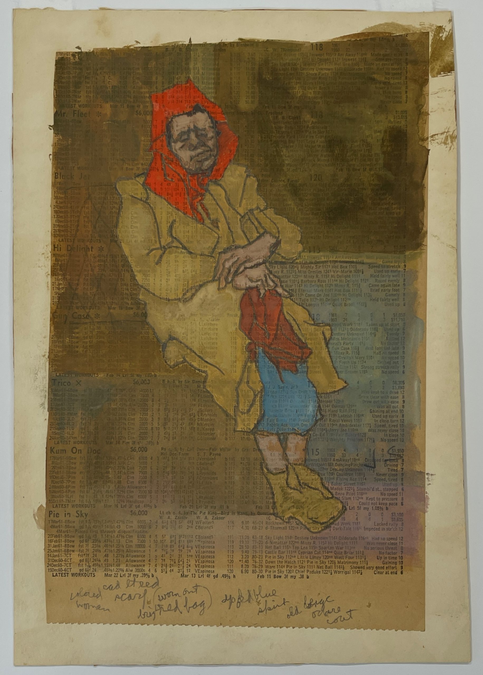 Gouache and pencil on newsprint racing form