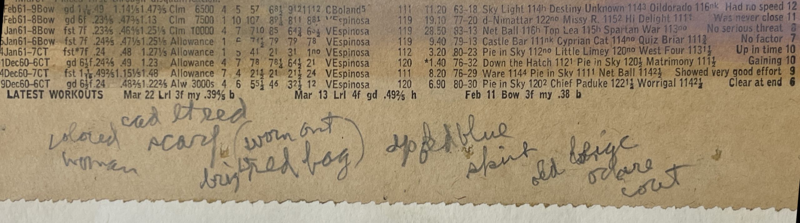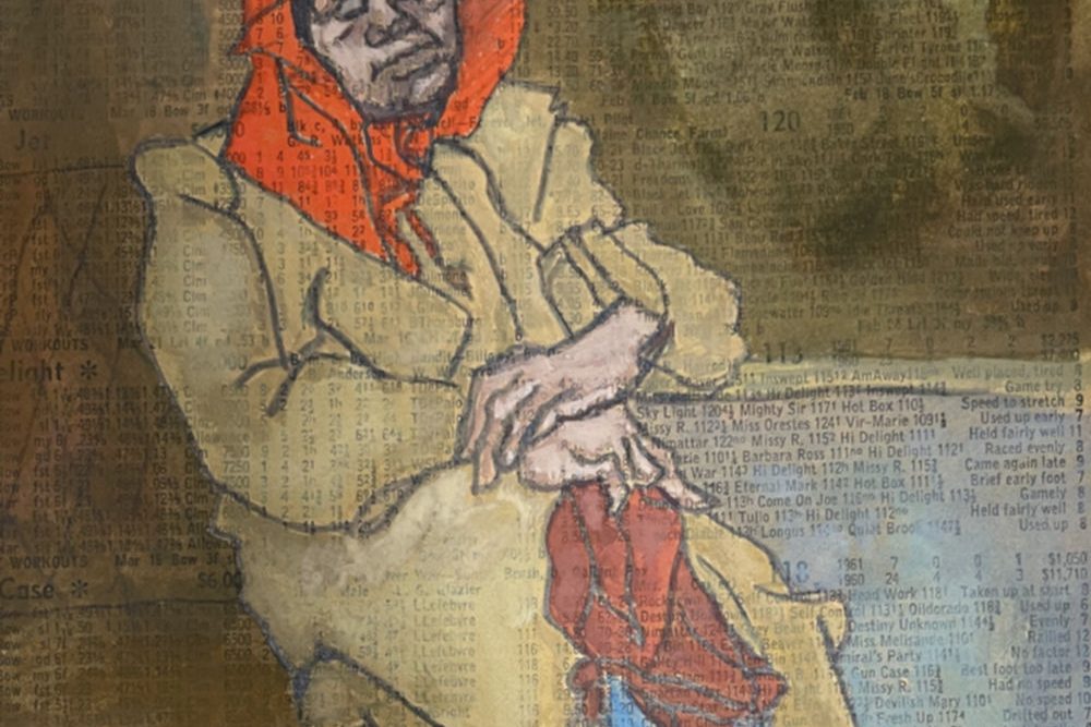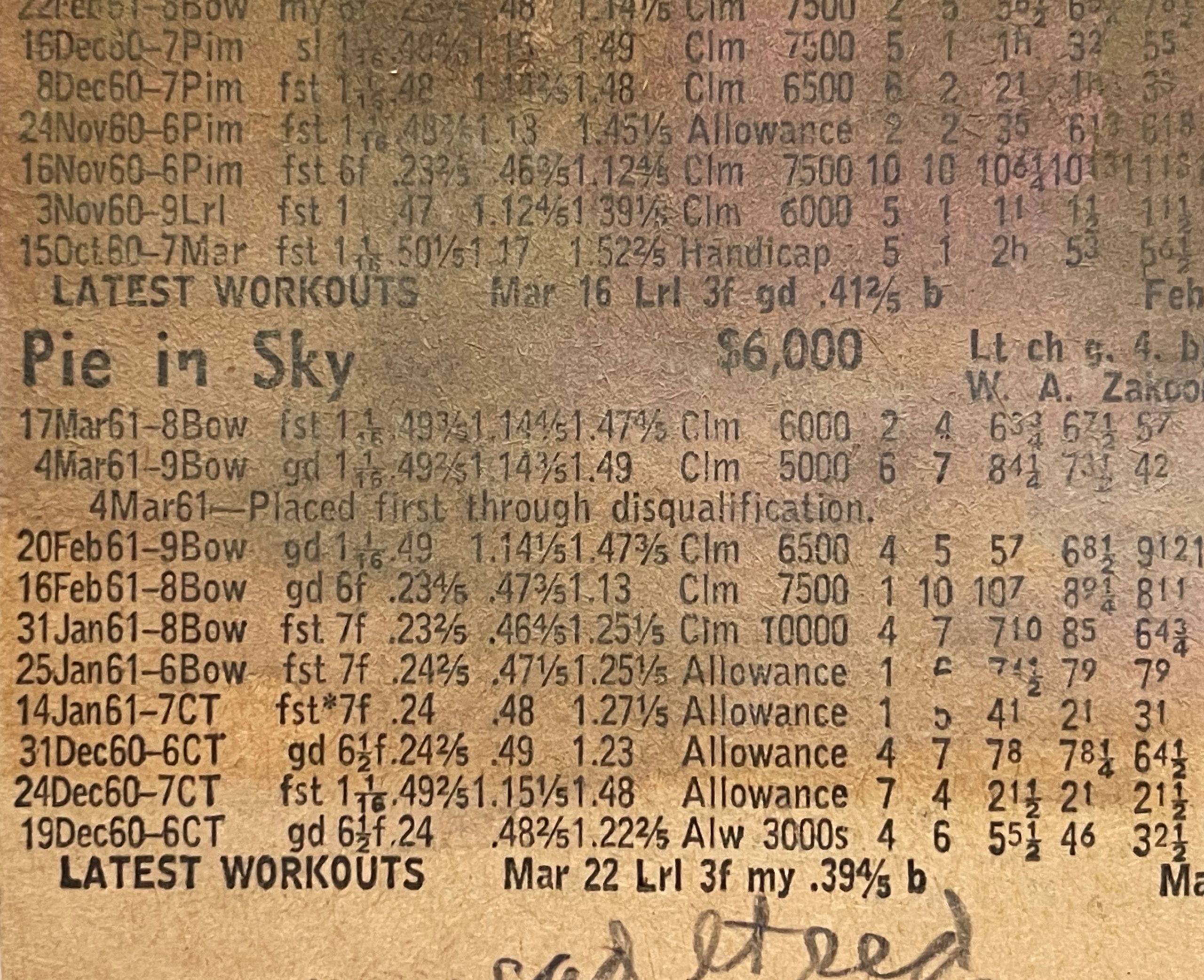 Gouache and pencil on newsprint racing form