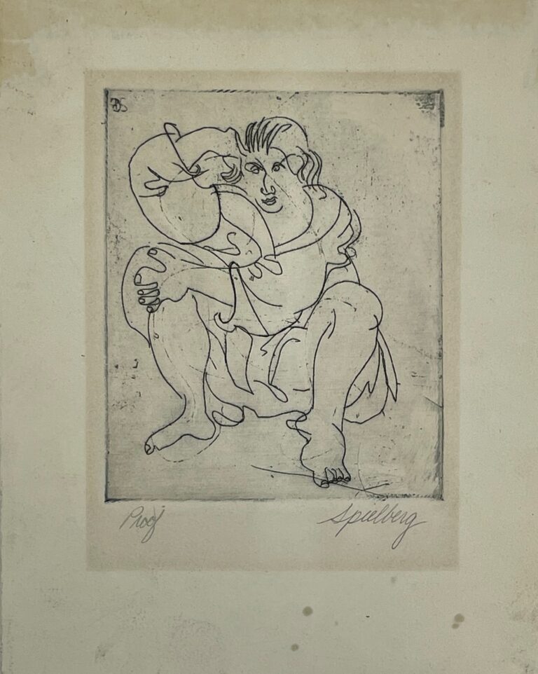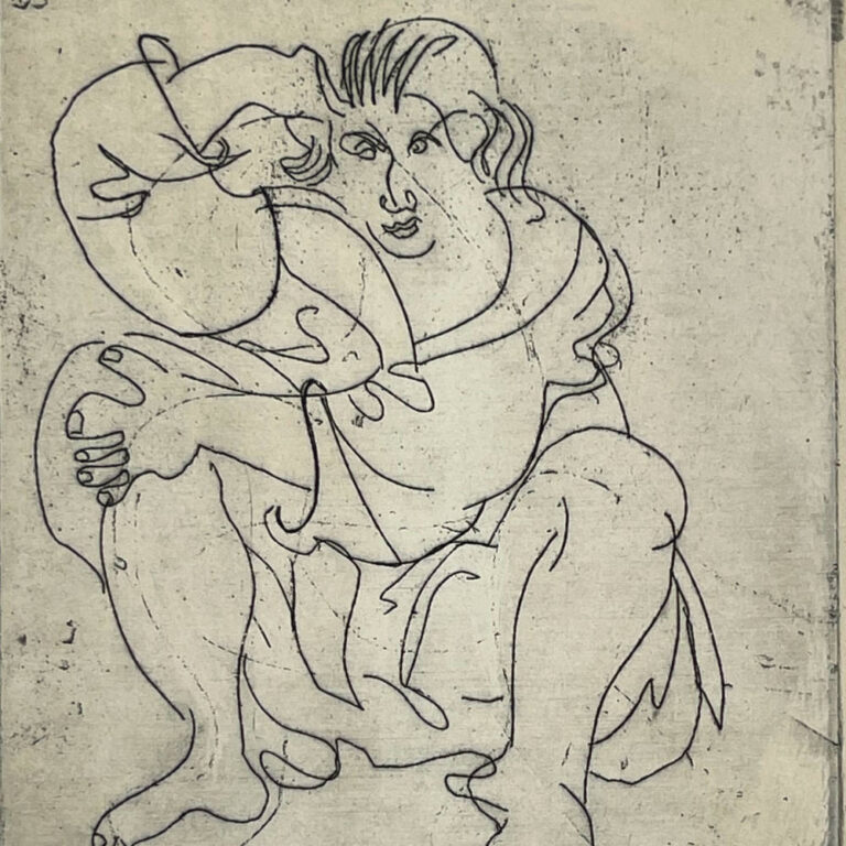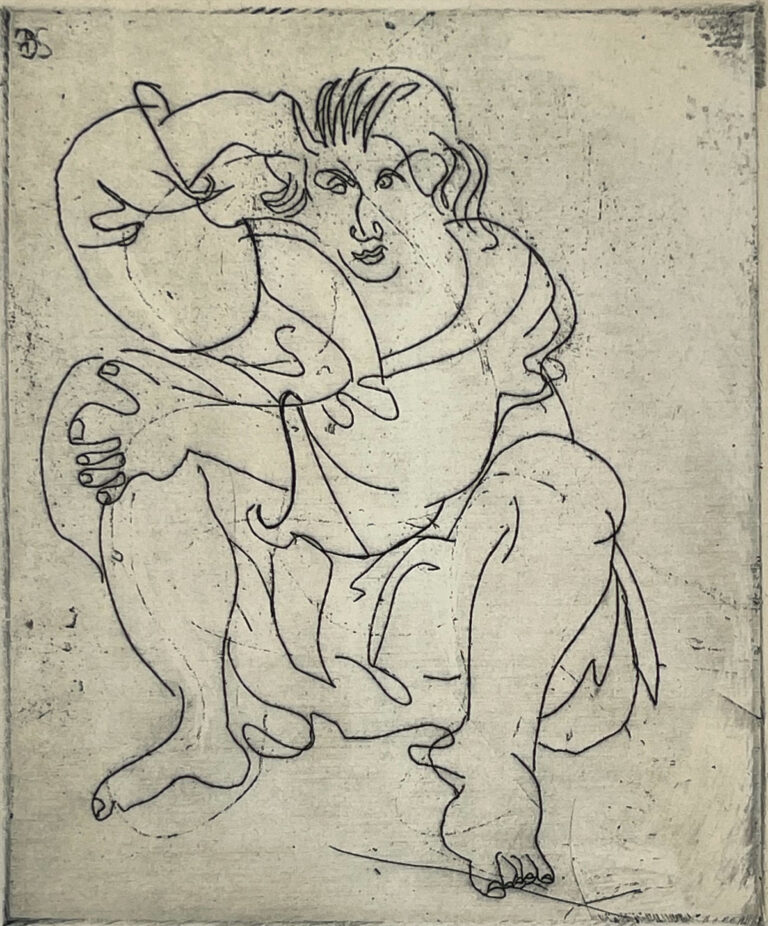 With spare lines and sure curves resembling the work of Stanley William Hayter, this portrait by Hertha Spielberg of a seated woman is beautiful and interesting.