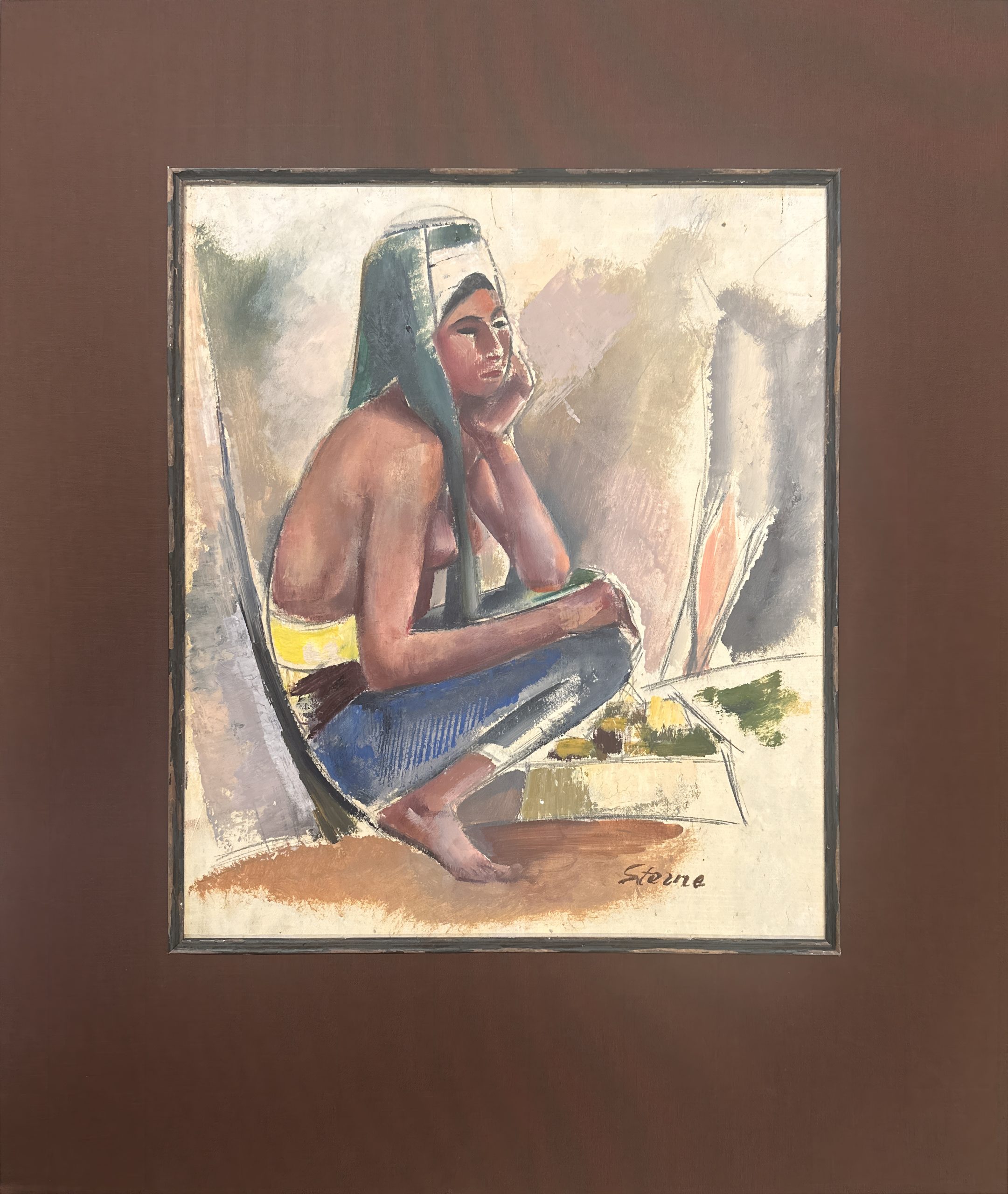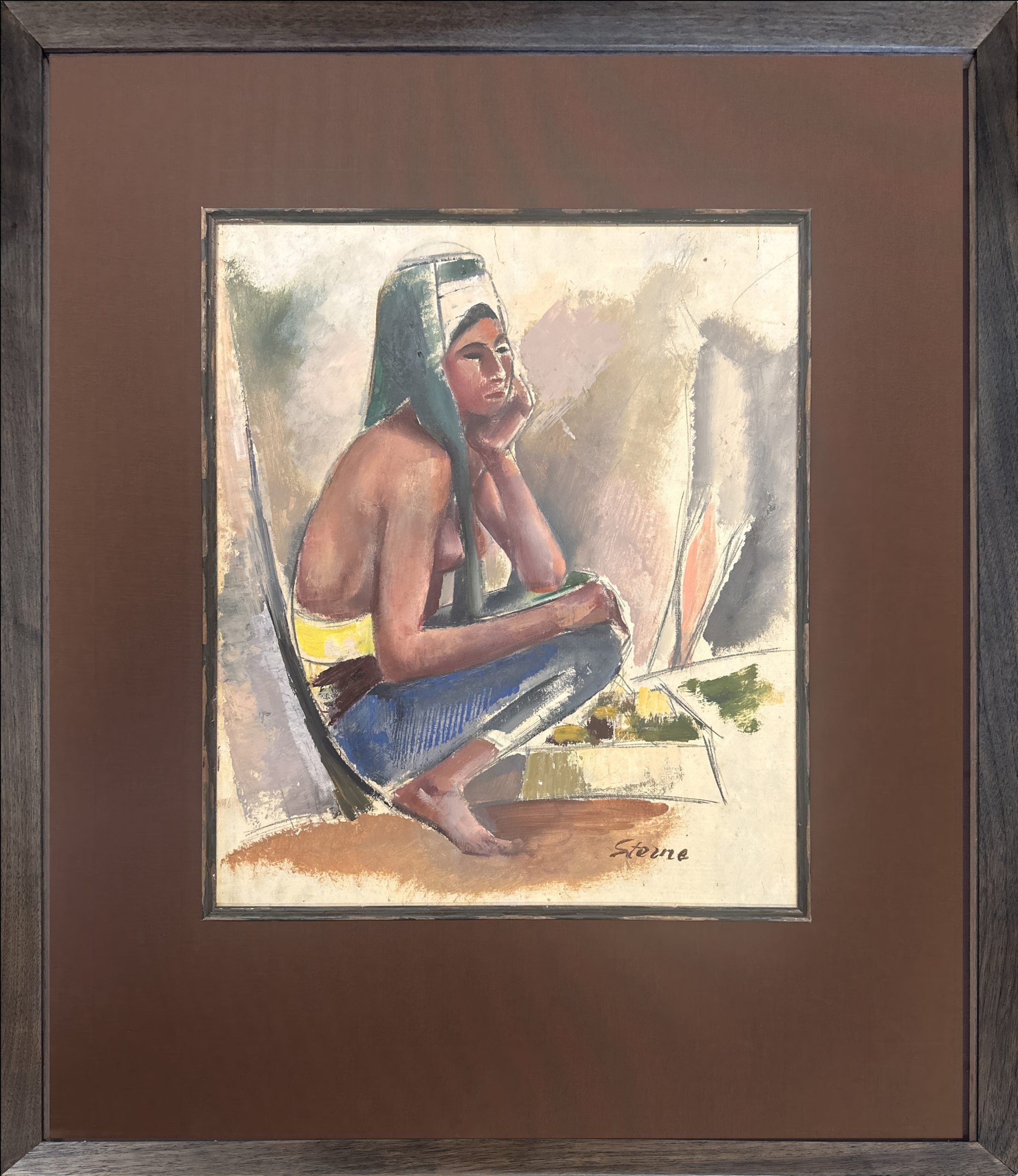 Custom framed using strictly conservation-grade materials in a solid oiled Walnut frame with a mat and filet behind 99% UV-blocking art glass.