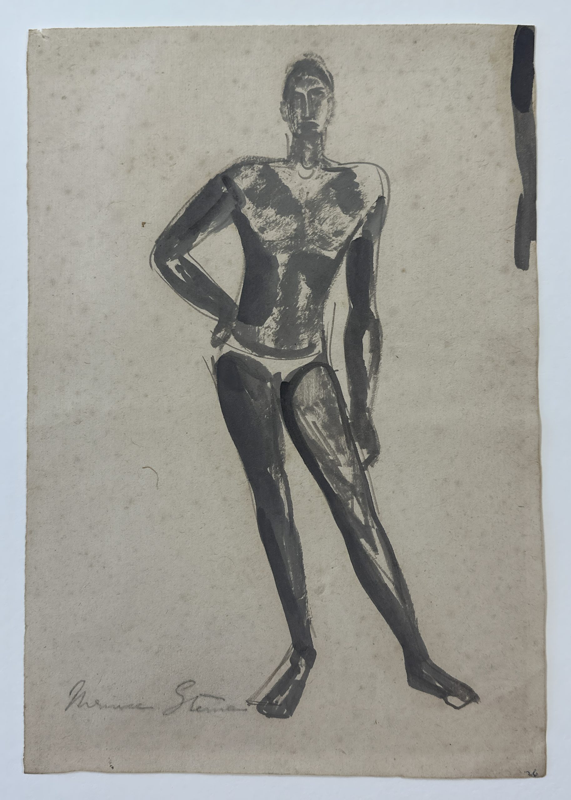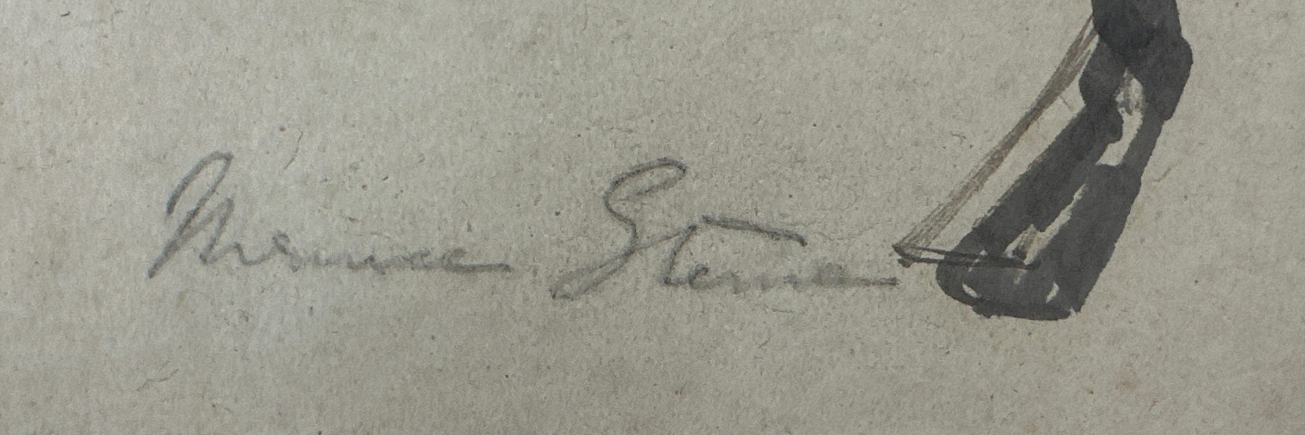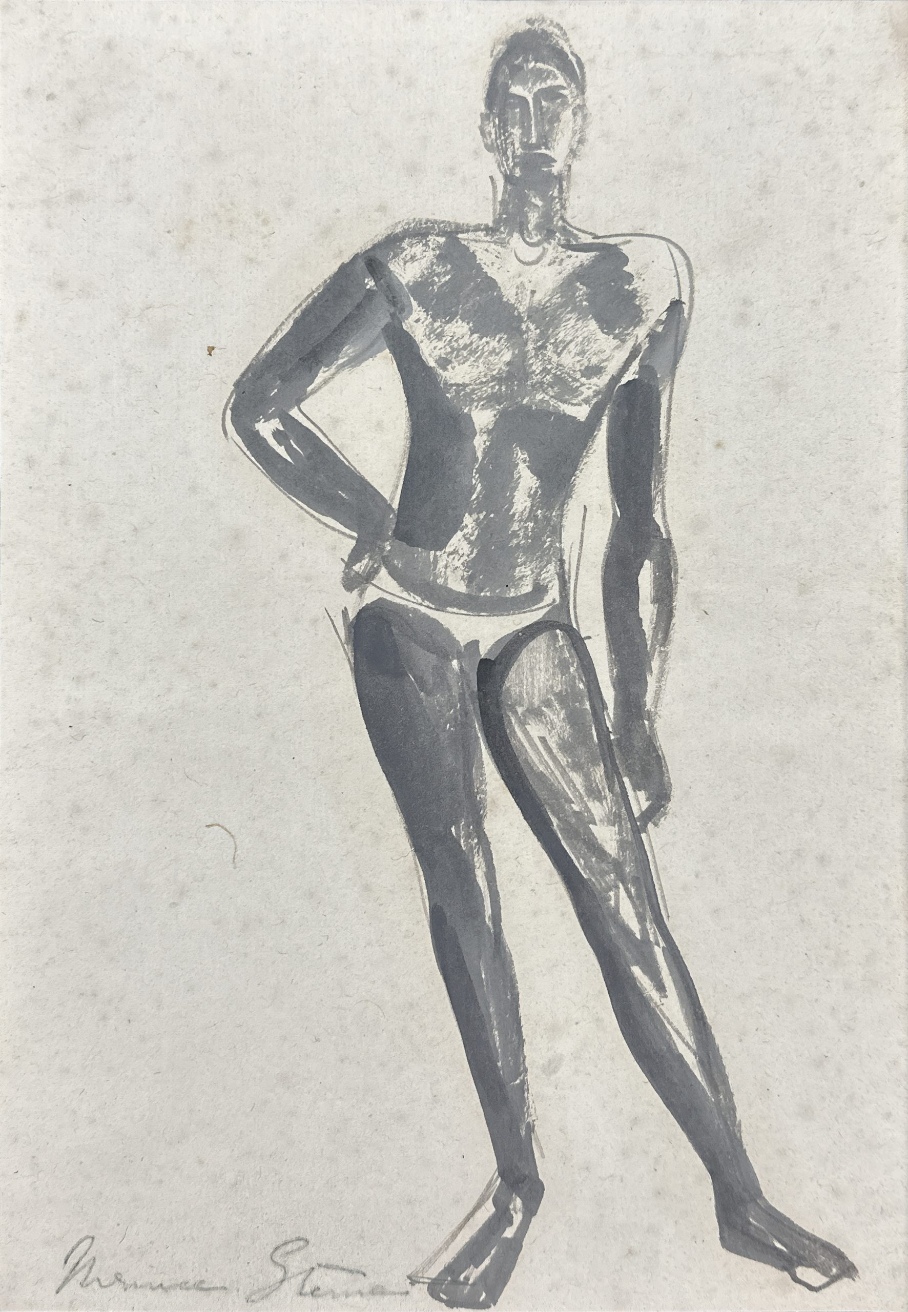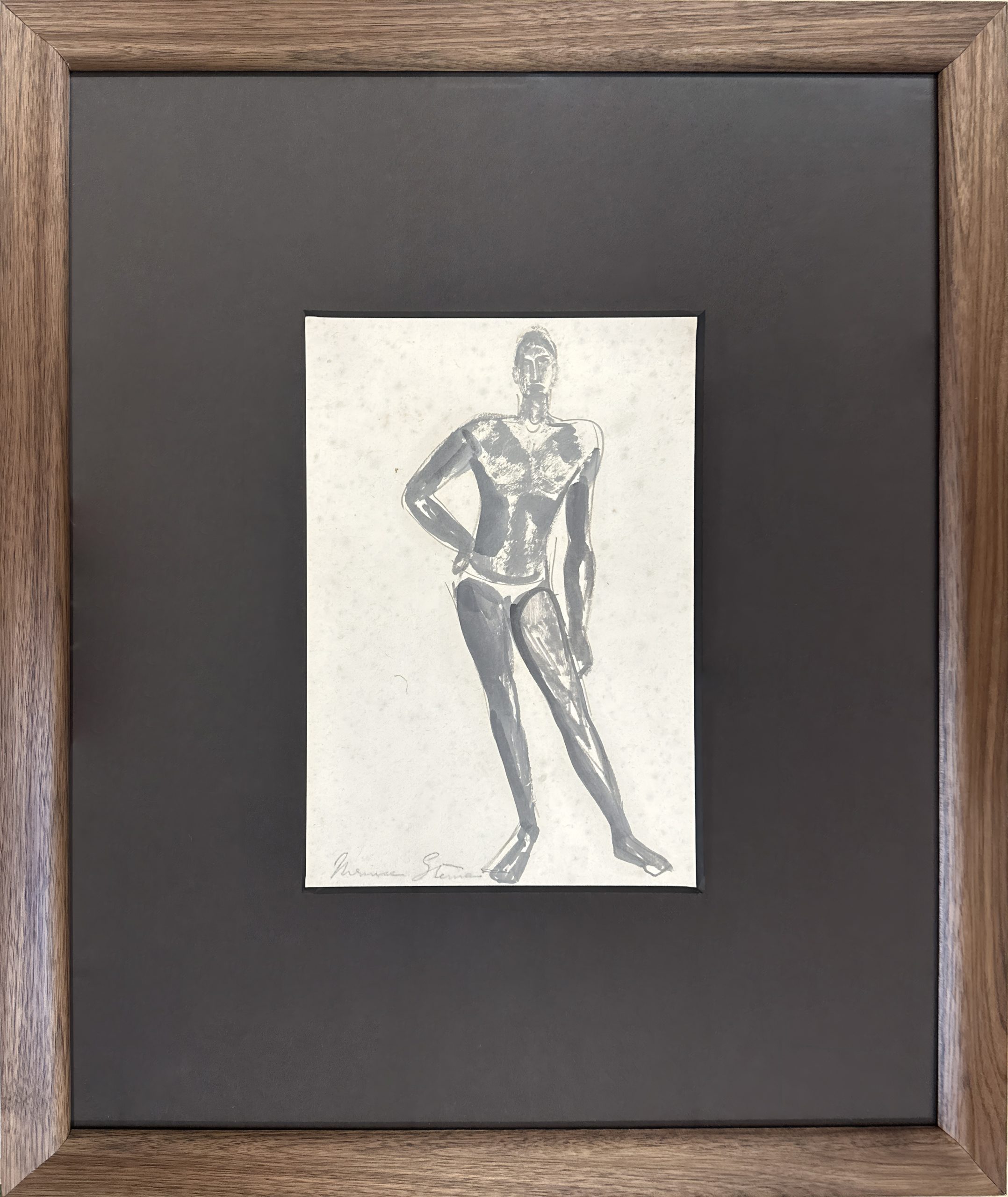 A male nude, with echoes of the lines and curves that Sterne used to map out the figure, and therefore perhaps a study, but with enough expression and texture as to suggest a more completed figure. A beautiful, expressive work. Custom framed using strictly conservation-grade materials in a solid oiled Walnut frame behind 99% UV-blocking art glass.