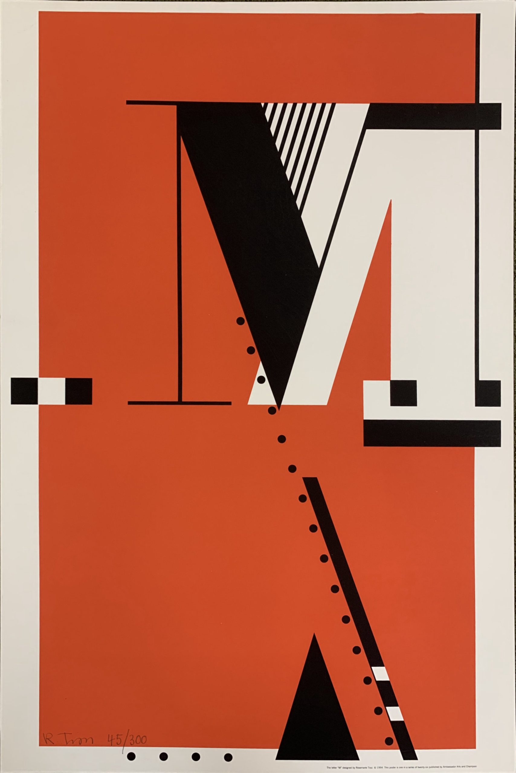 This work was part of an advertising project for Champion Paper. A dozen artist-designers with international reputations, including Peter Saville, Seymour Chwast, and Michael Bierut, were commissioned to design a letter. Rosmarie Tissi was assigned the letters M and R.