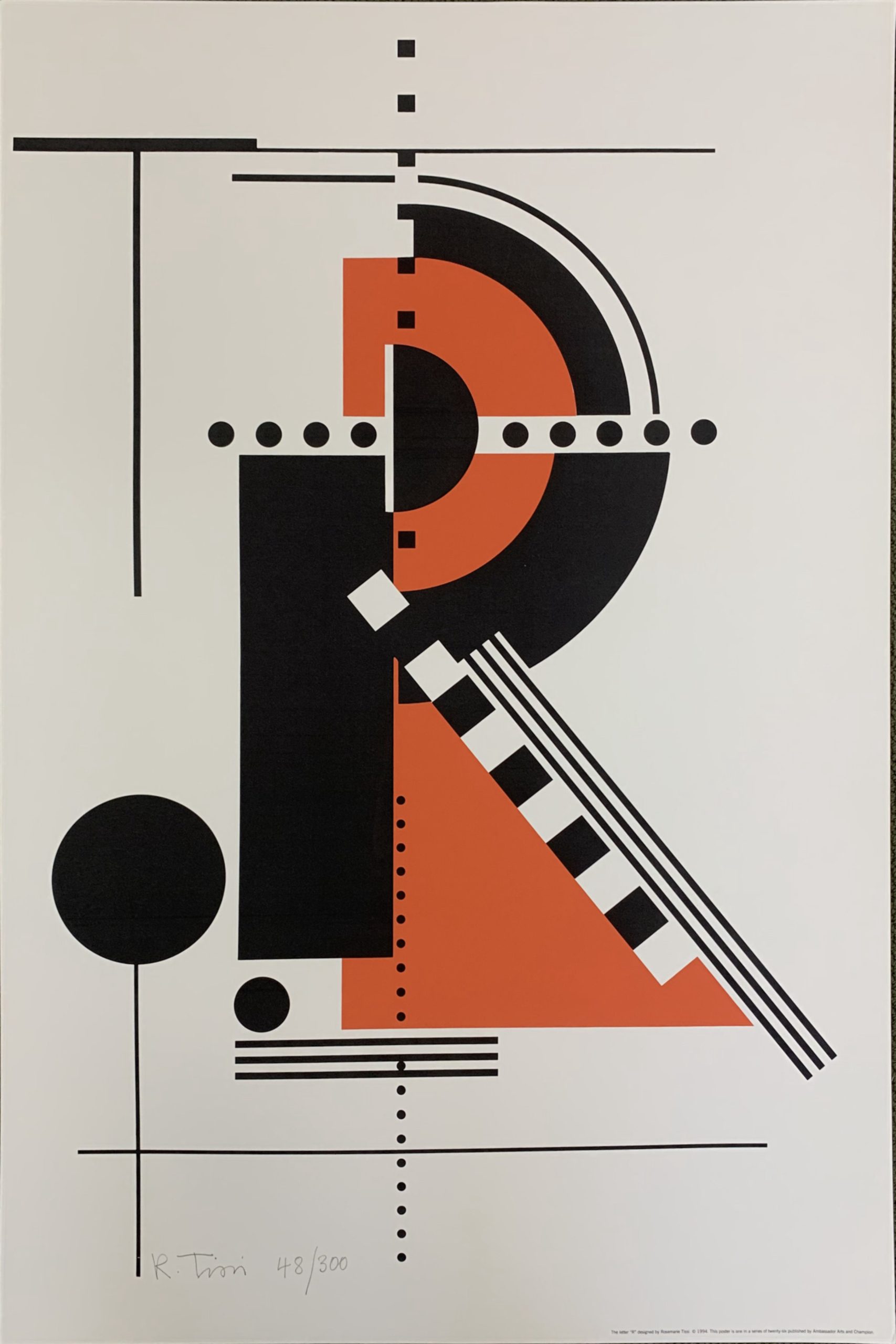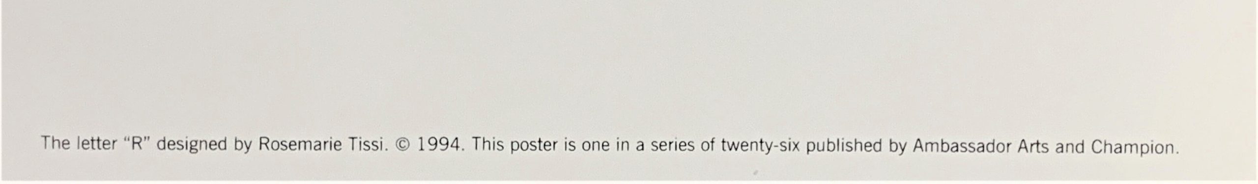 This work was part of an advertising project for Champion Paper. A dozen artist-designers with international reputations, including Peter Saville, Seymour Chwast, and Michael Bierut, were commissioned to design a letter. Rosmarie Tisi was assigned the letters M and R.