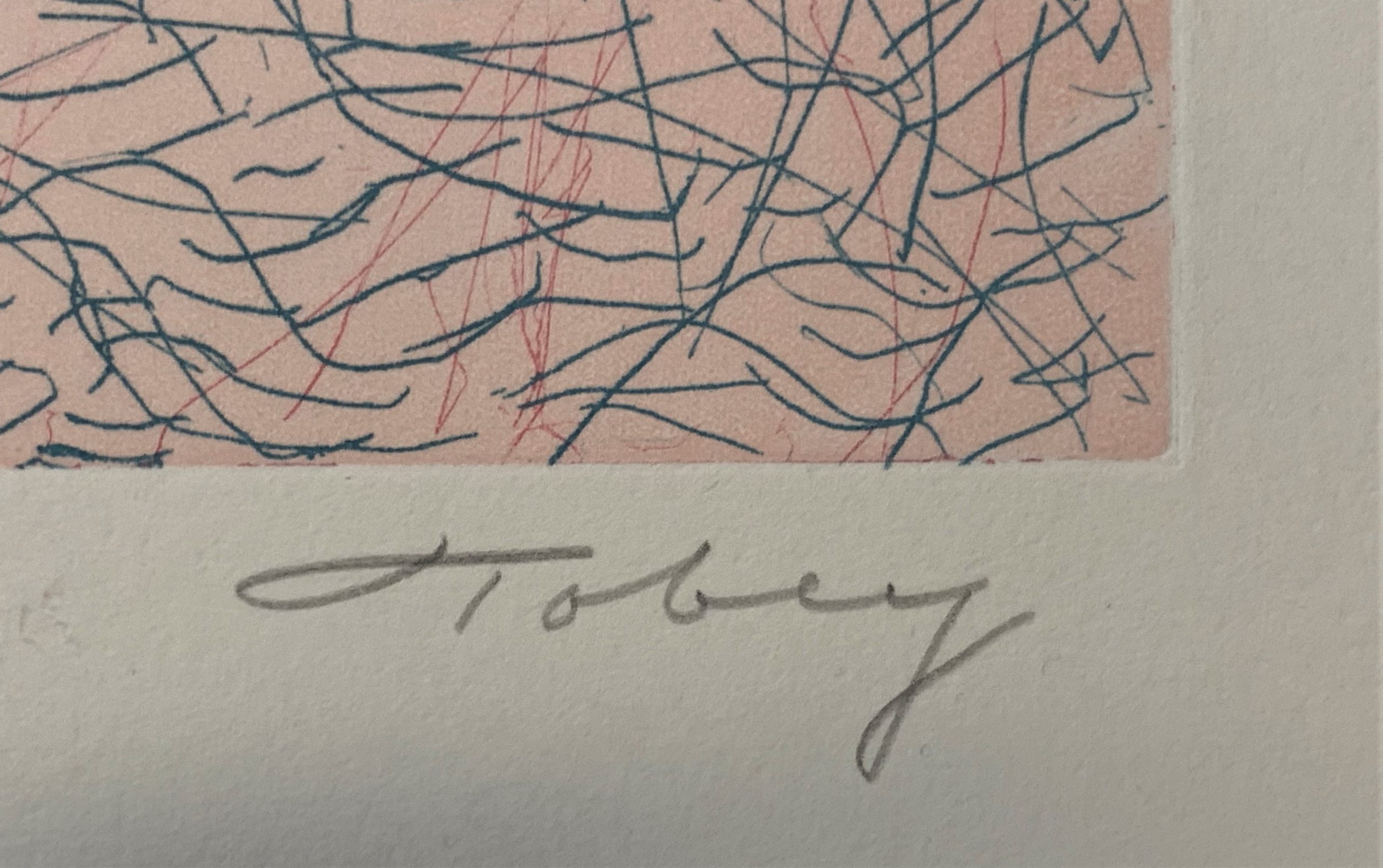 This work is an excellent example of Mark Tobey’s “white writing”.