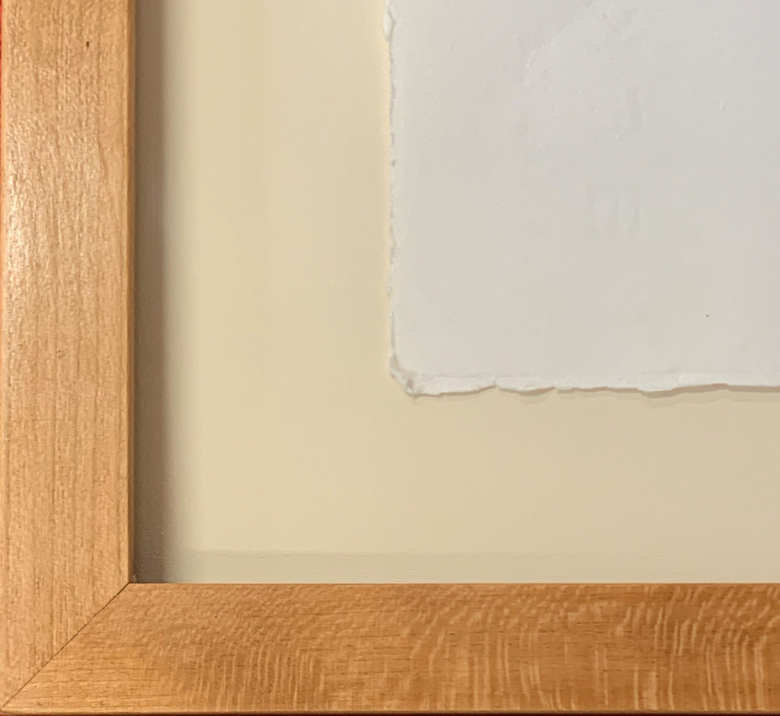 This work is floated and custom framed in a solid cherry frame behind 99% UV-Filtering Plexiglass. The glazing is lifted off the work with spacers. Framed with all conservation materials.