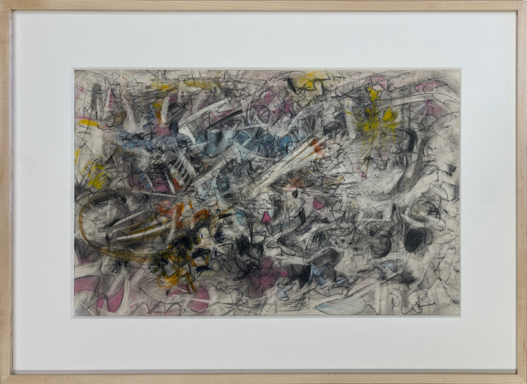 Domenick Turturro uses line and color to create joyous, energetic fields of abstraction.  Recalling artists such as Mark Tobey and Jackson Pollock, Turturro has a layered approach that blurs the boundary between foreground and background, while he creates a sense of depth with his luminous colors. While the overall forms of each piece may evoke flowers, land formations, and patterned fabrics, Turturro’s muse remains an homage to abstraction.