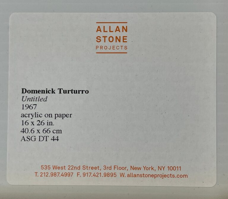 Exhibited at “Domenick Turturro: Works on Paper” at Allan Stone Projects, May 2019.