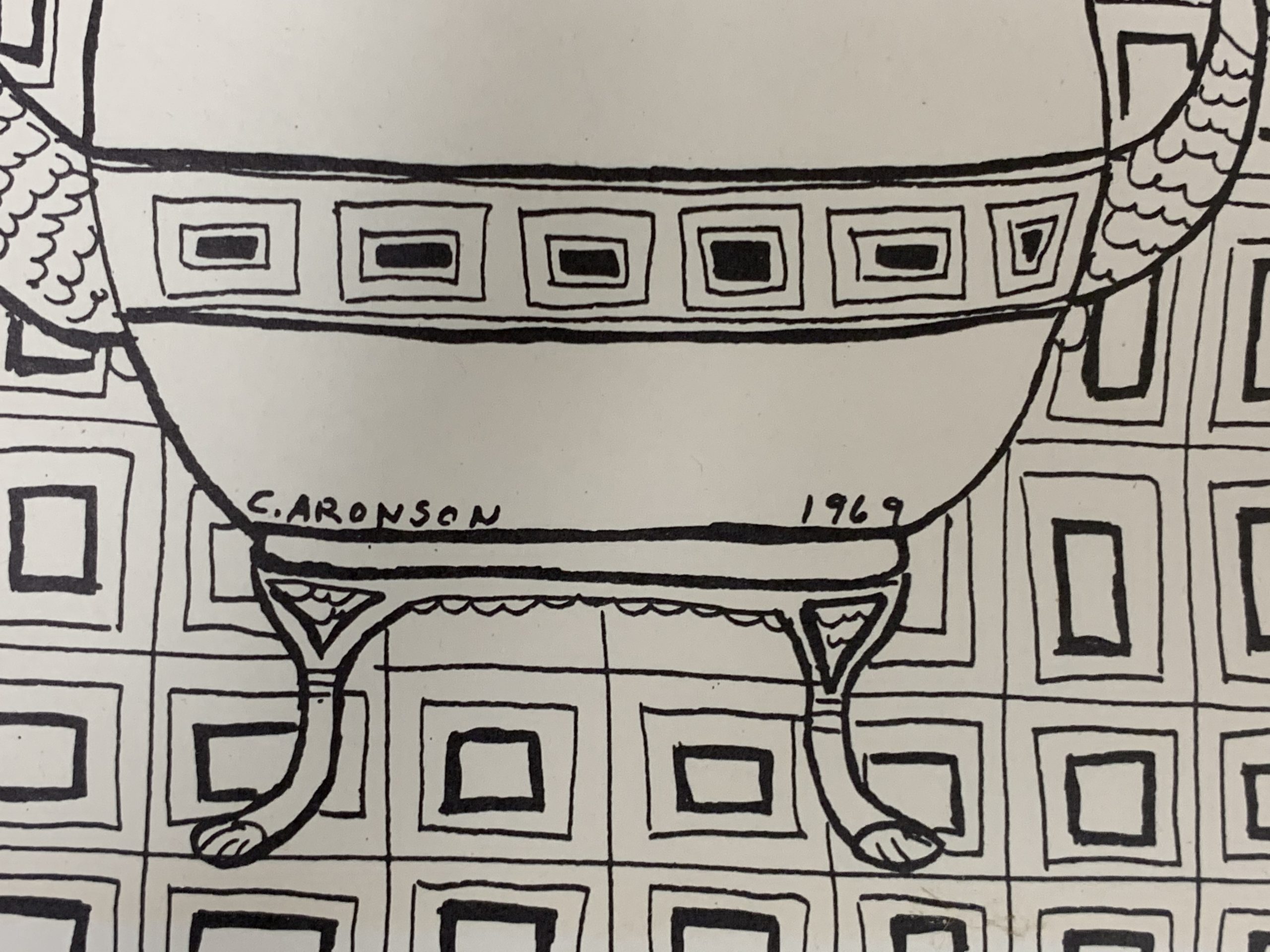 An early woodblock print by the accomplished painter. Connie Aronson is primarily known for her vibrant use of color—but clearly she is equally adept working with little or no color.
