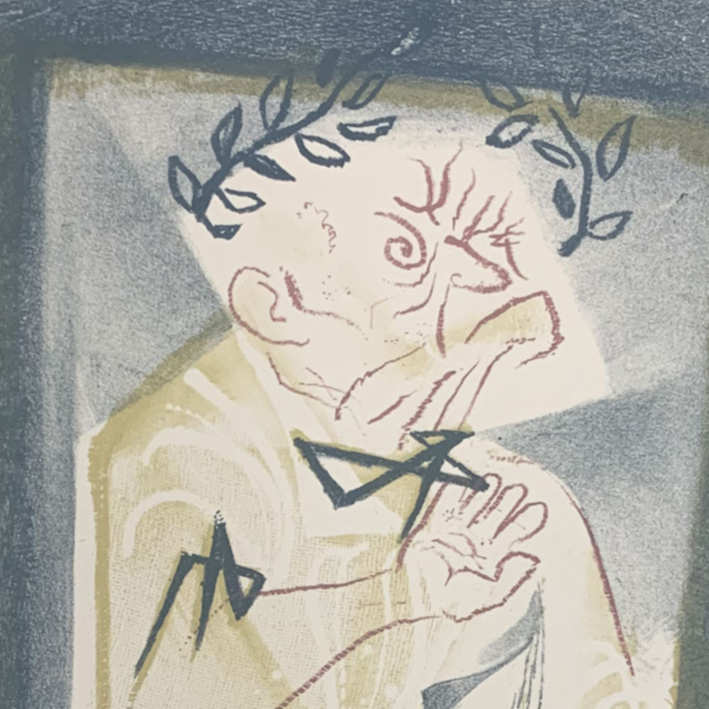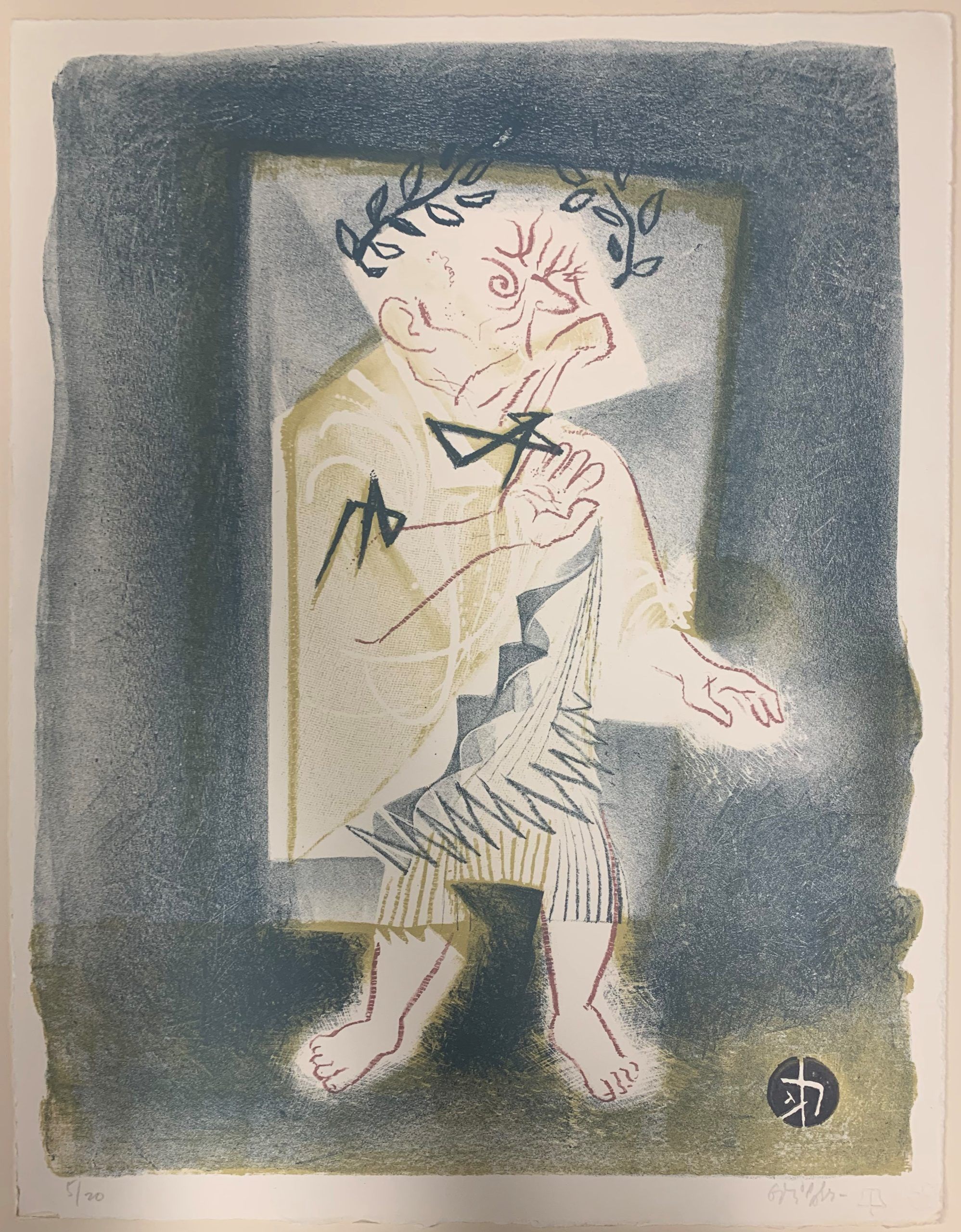 This lithograph was printed in a sequence of three colors (yellow-gray followed by blue-gray then red-brown).