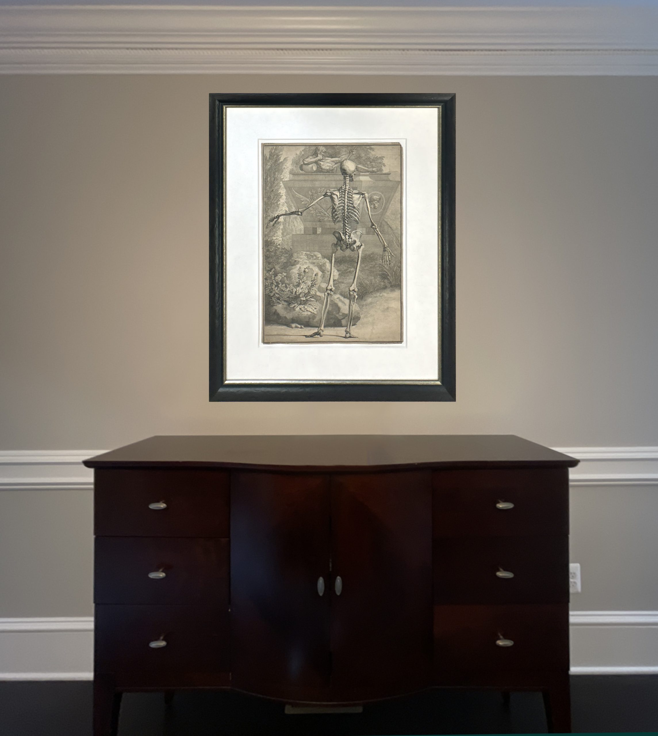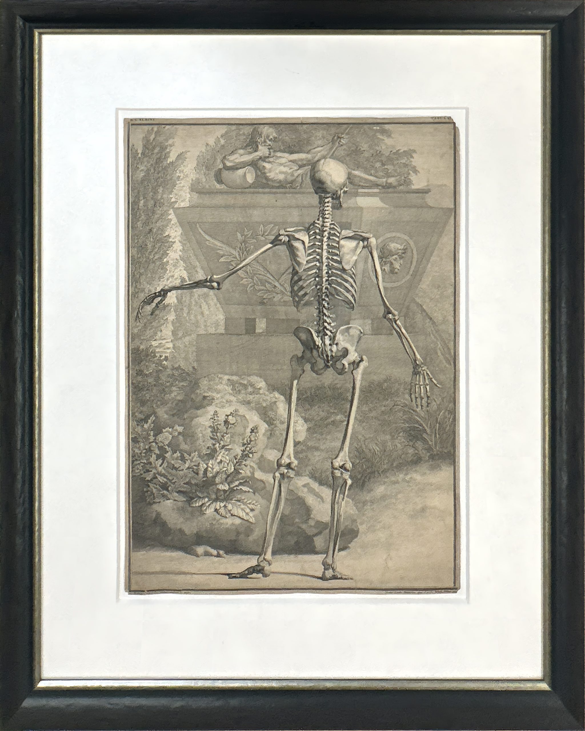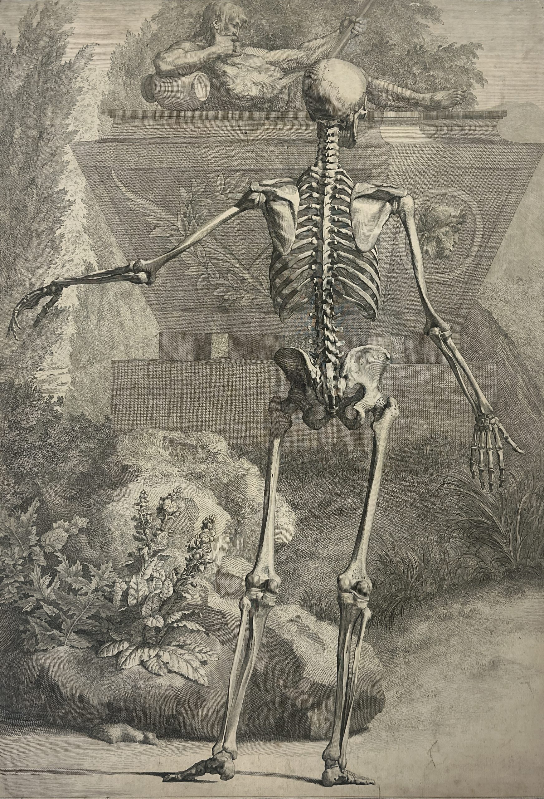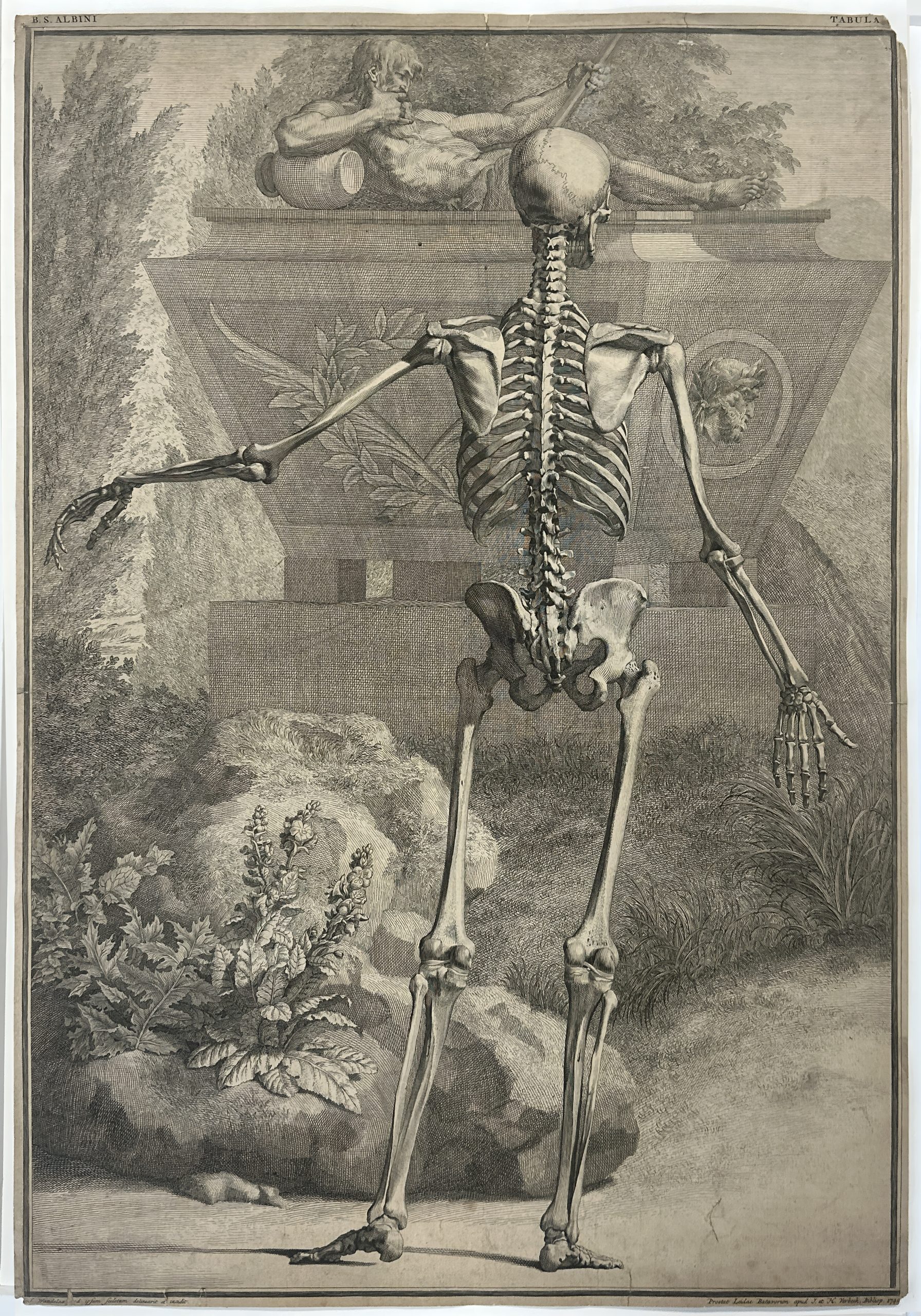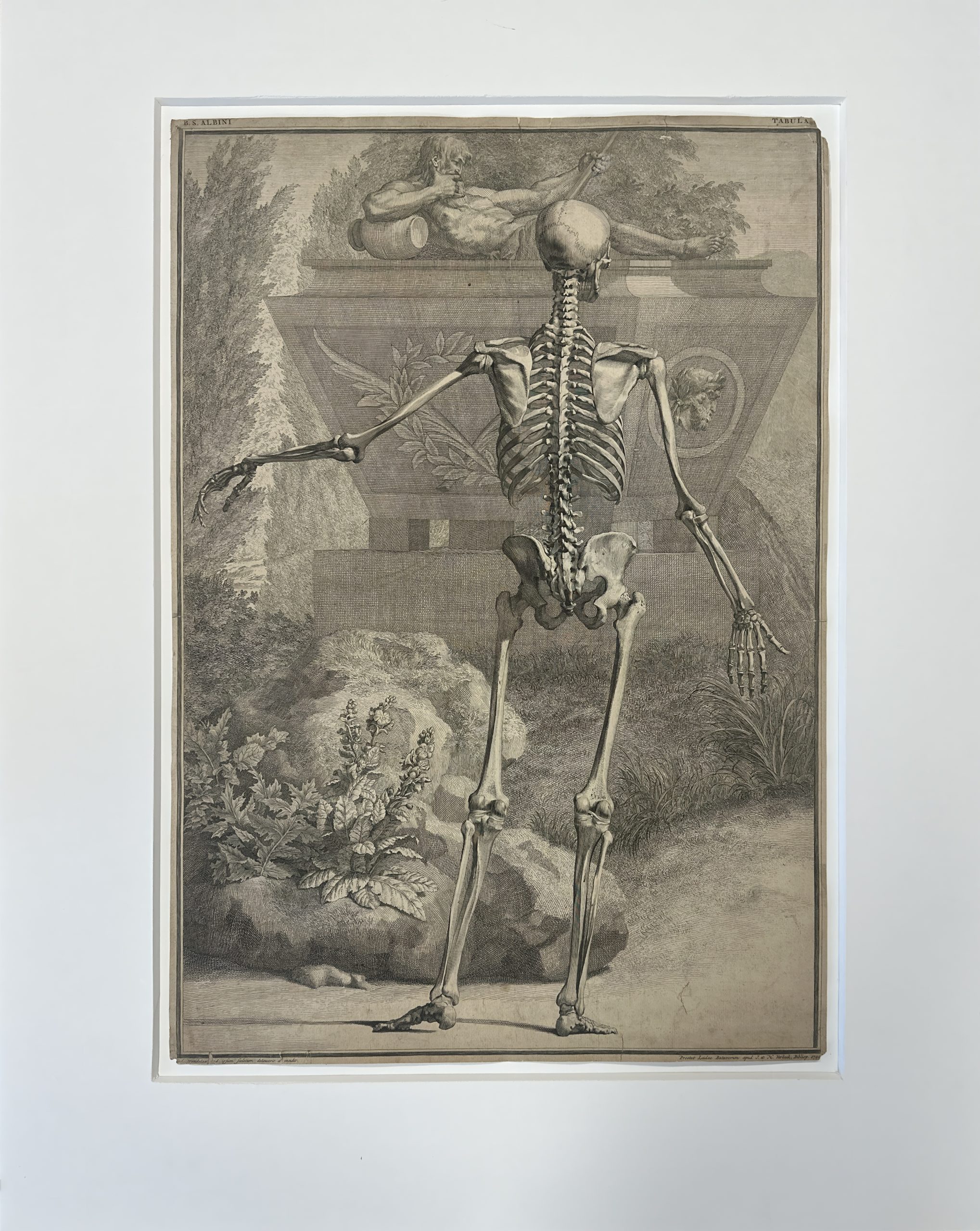 A plate from Berhard Siegfried Albinus’ famous “Tabular Sceleti et Cusculorum Corporis Humani”, etched by Jan Wandelaar from his own drawing.