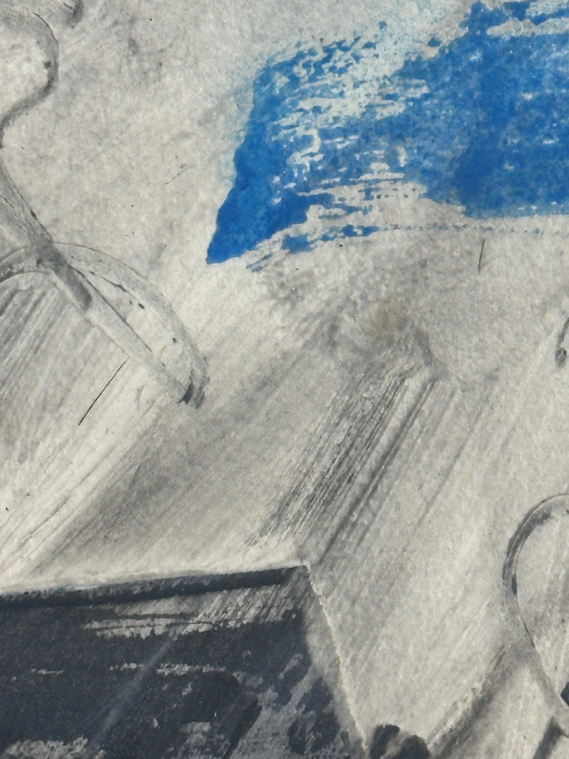 Acrylic, Paper, Graphite, And Thread On Watercolor Paper