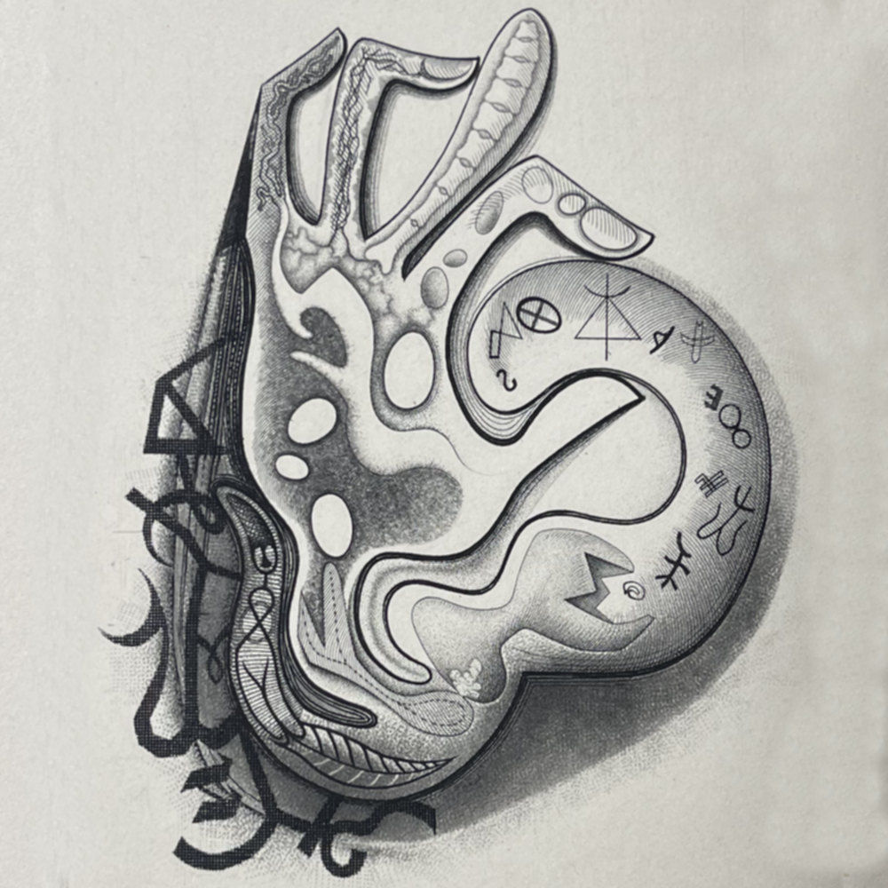 The Creator by Albert-Edgar Yersin was part of a 1949 portfolio produced by an artist’s group in Paris called “Graphies”, formed in 1948 by Henri Goetz, Christine Boumeester, Andre Flocon, and Raoul Ubac. They decided that for their first collective album no subject could be more suitable for engravers united in their love for the work—and who believe that the struggle with the work is the raison d’être of their art—than the human hand. The resultant portfolio, “For the Glory of the Hand” [La Gloire de la Main], was completed on Wednesday, June 15, 1949.