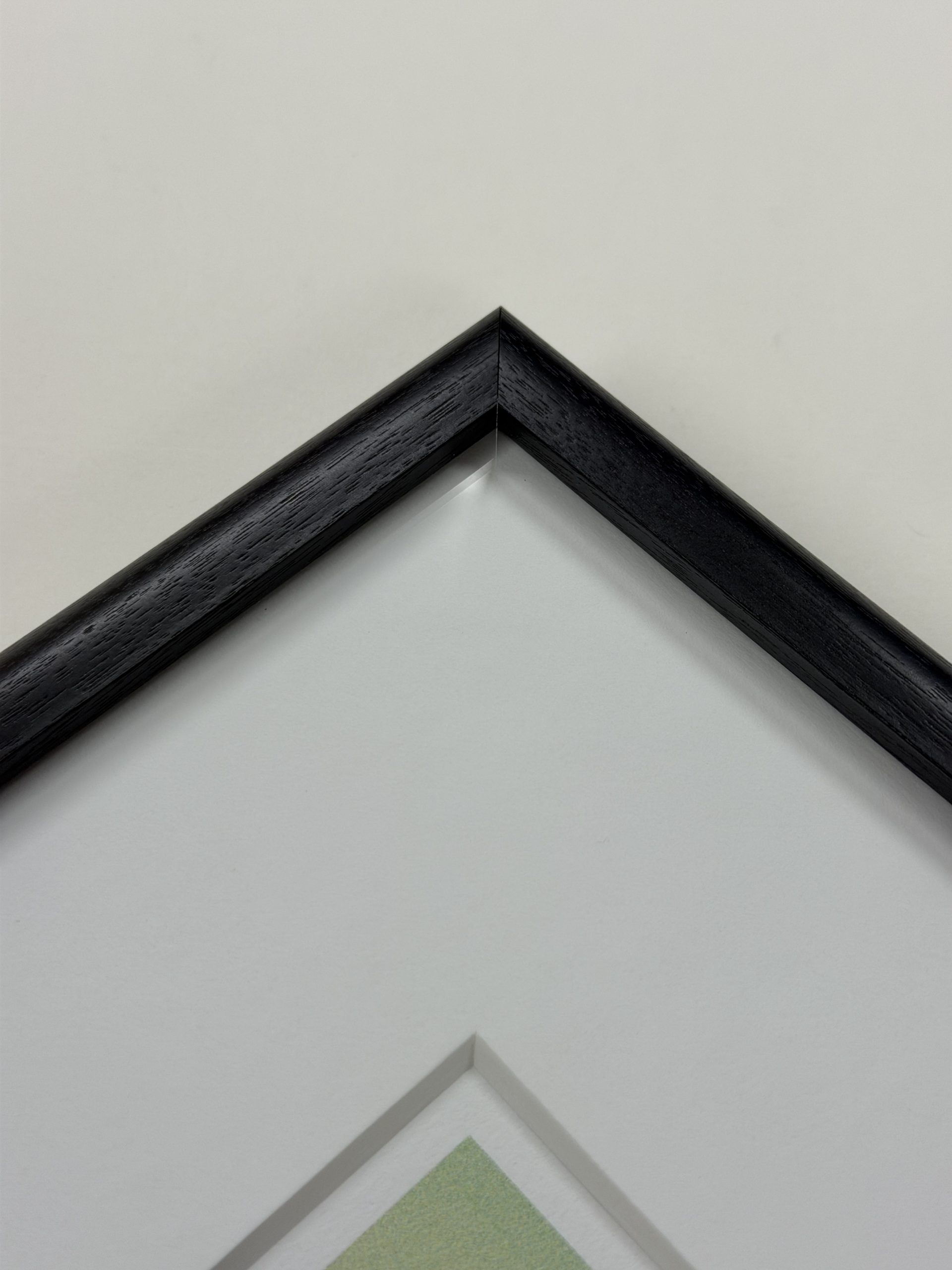 Custom framed in a solid walnut frame using strictly conservation-grade materials behind 99% UV-blocking art glass.
