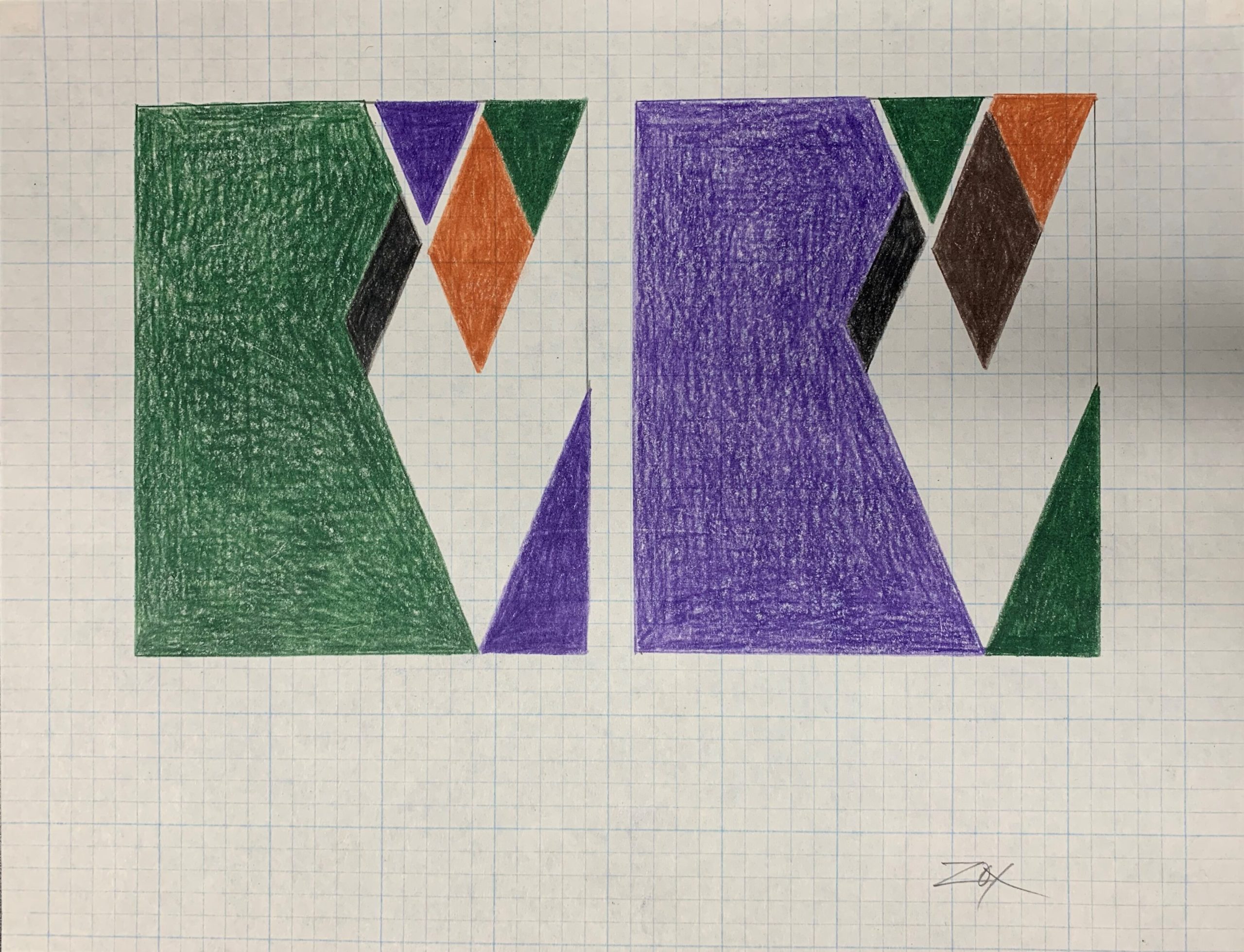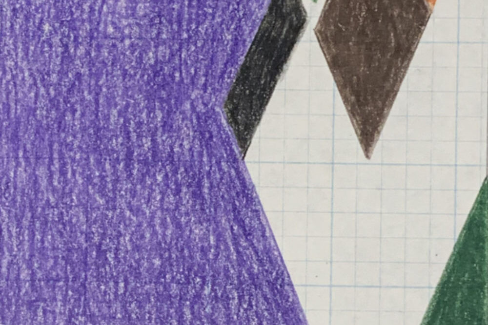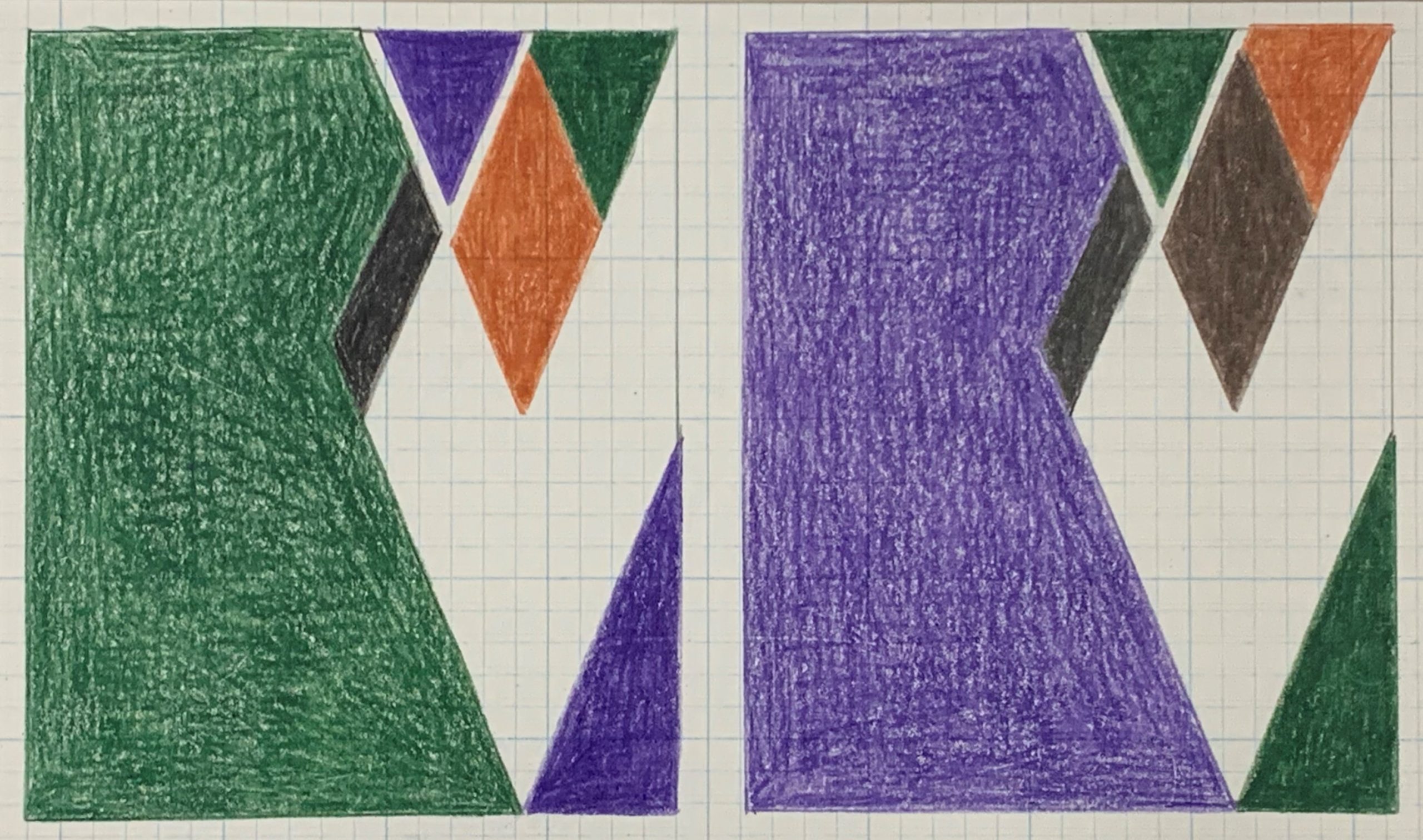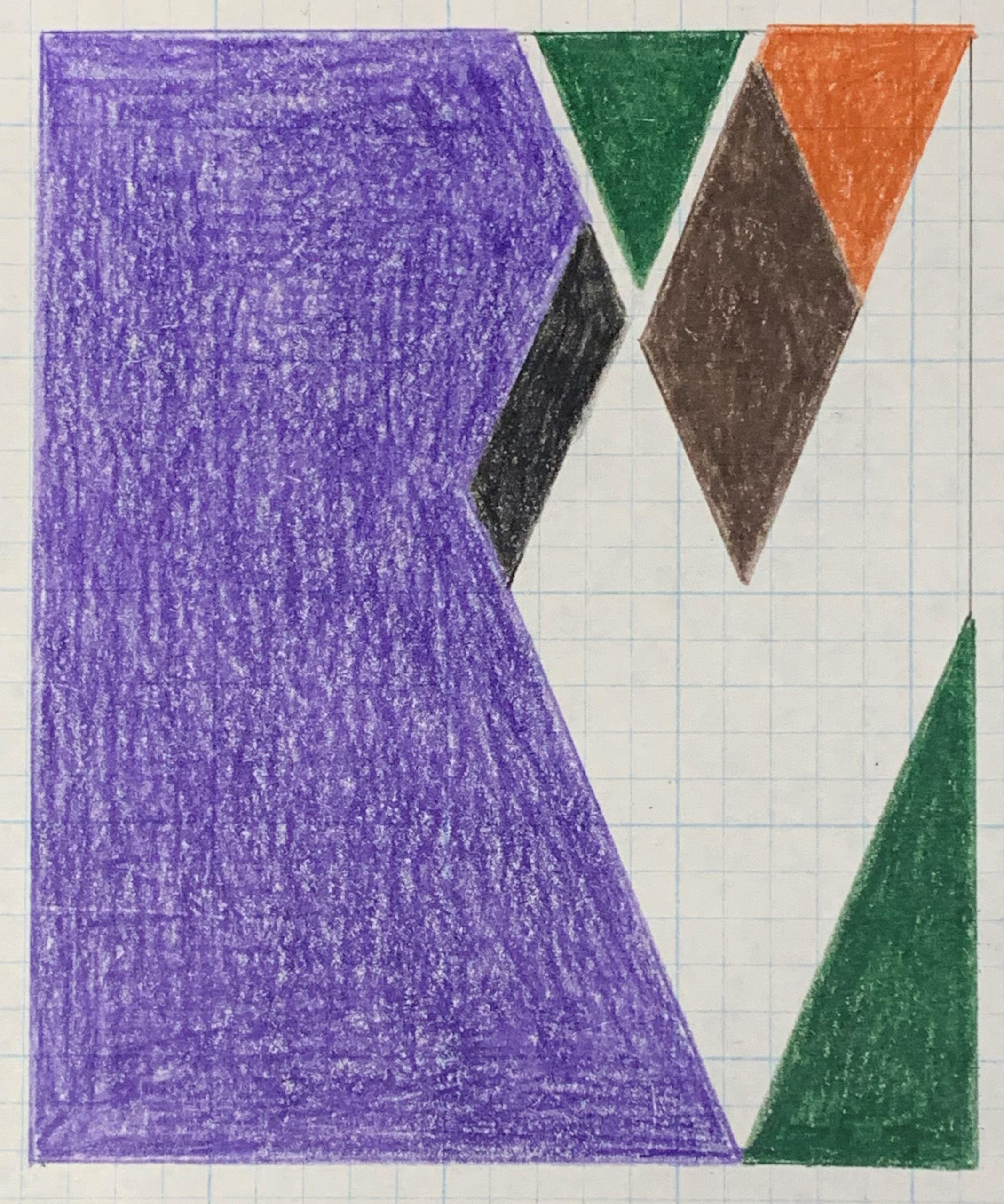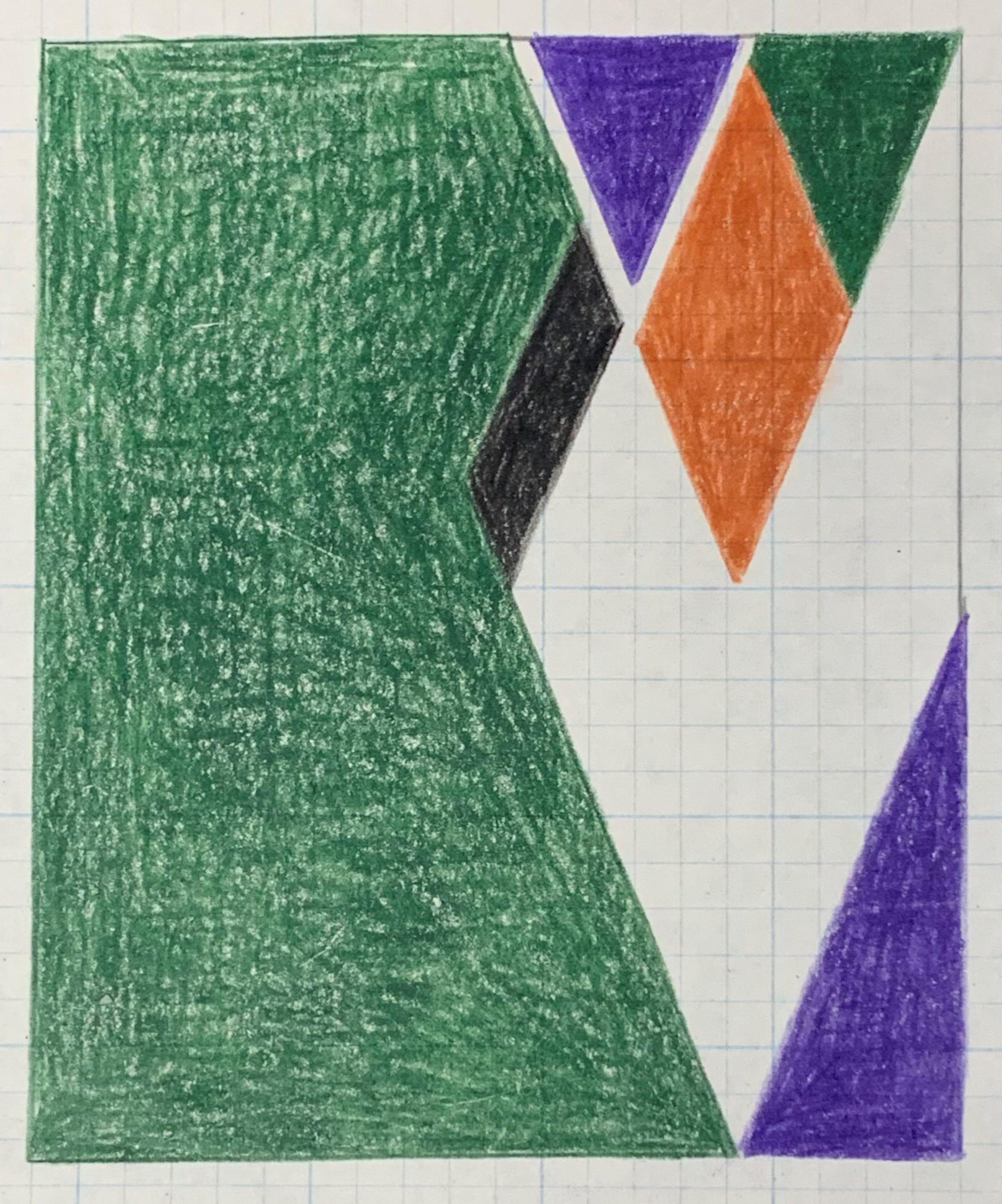 Colored pencil on blue-gridded graph paper