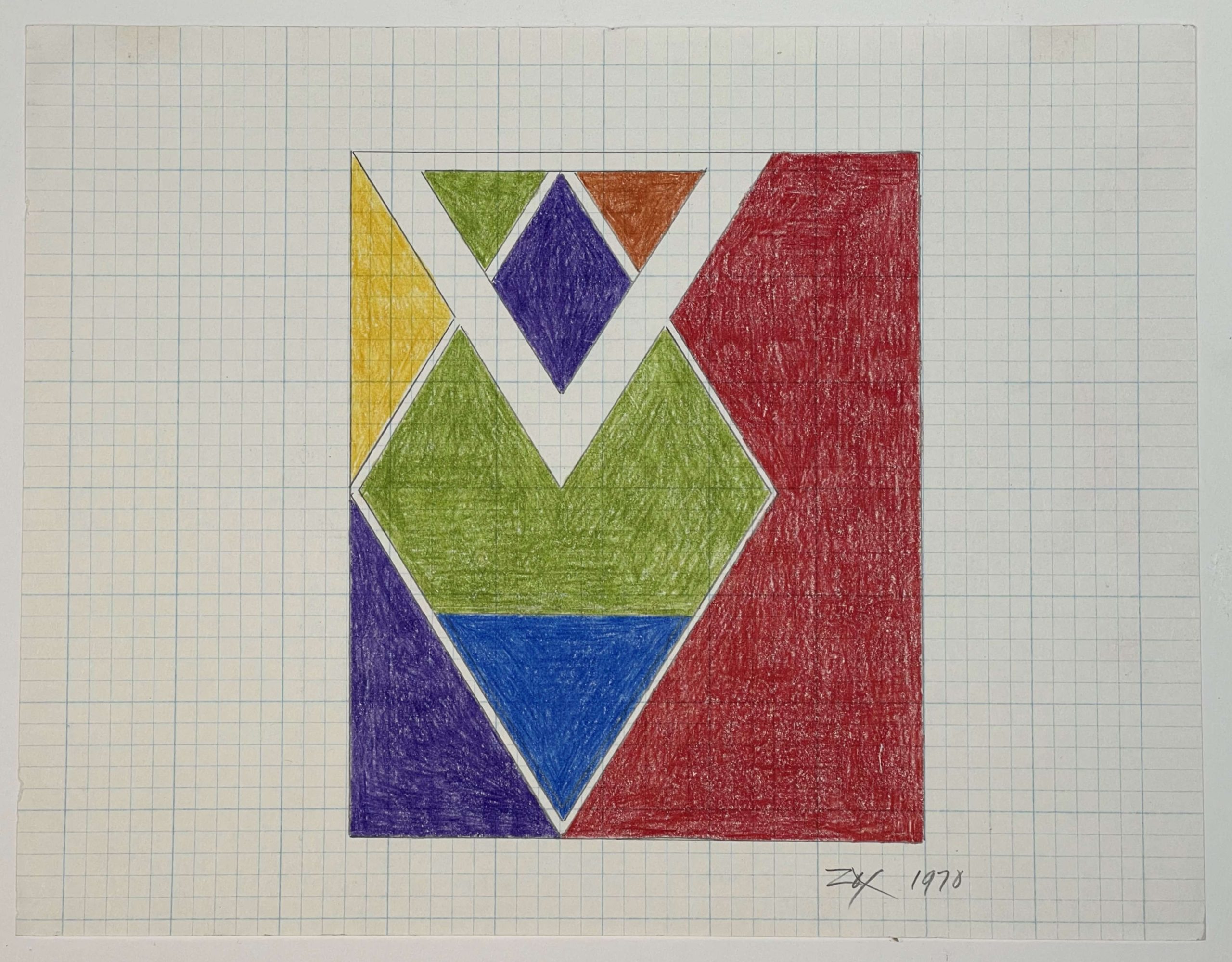 This work is one of the most important motifs from Larry Zox, one of the most important artists doing hard-edge geometric abstraction. Demonstrating extraordinary skill as a colorist and in shape and form, his “Diamond Drill” series was a highlight of his 1973 major retrospective at the Whitney.