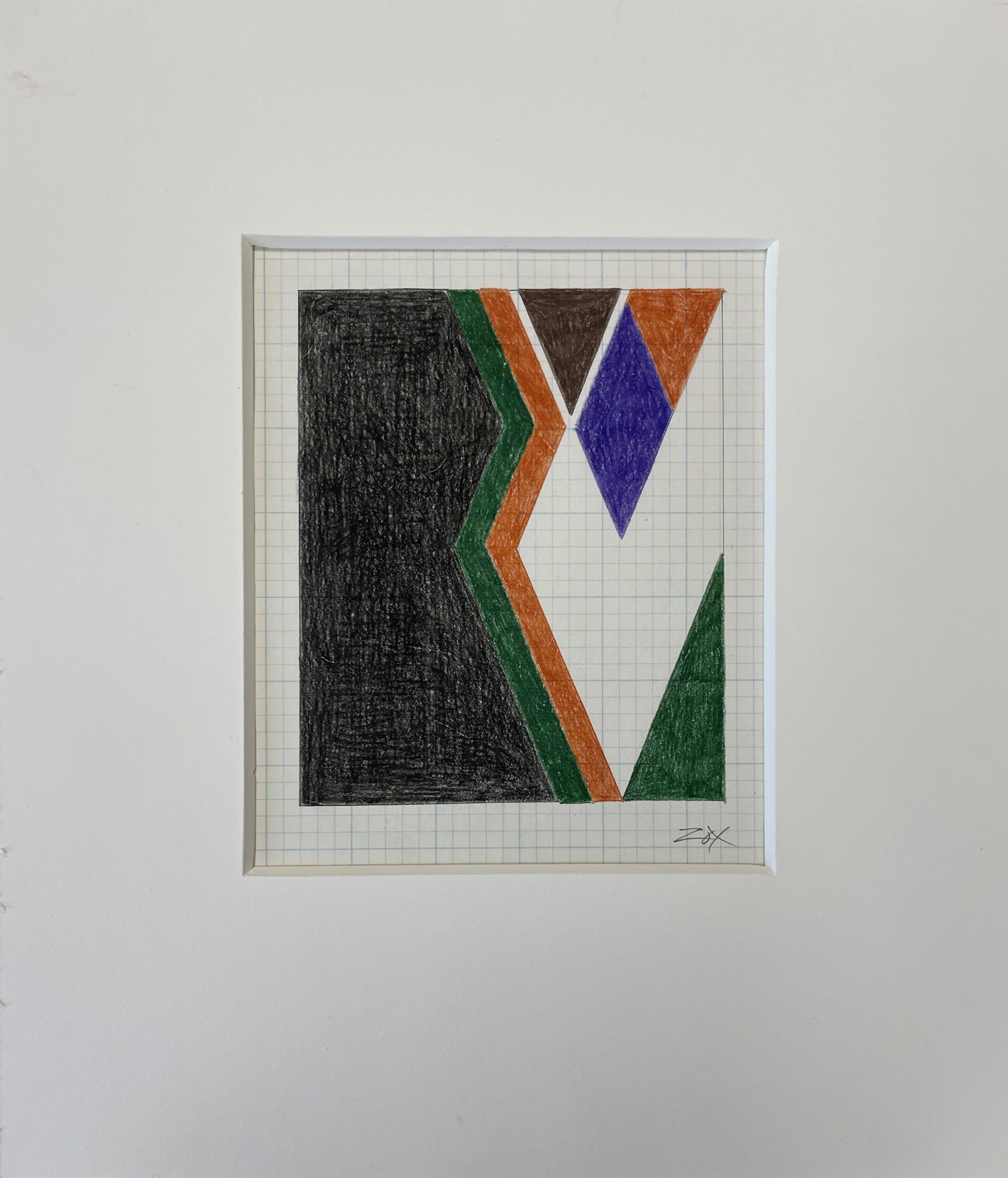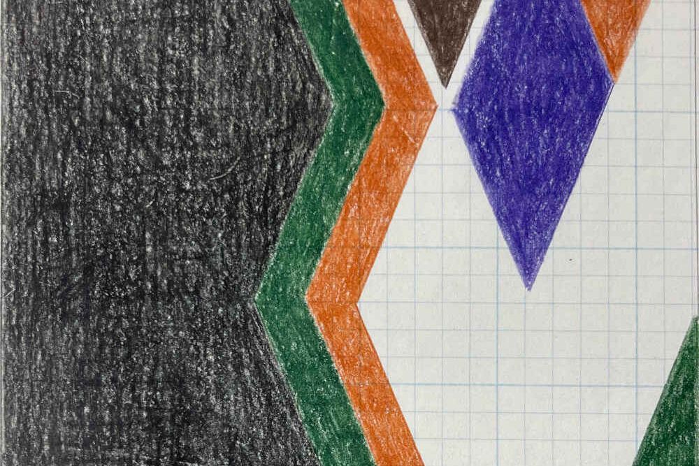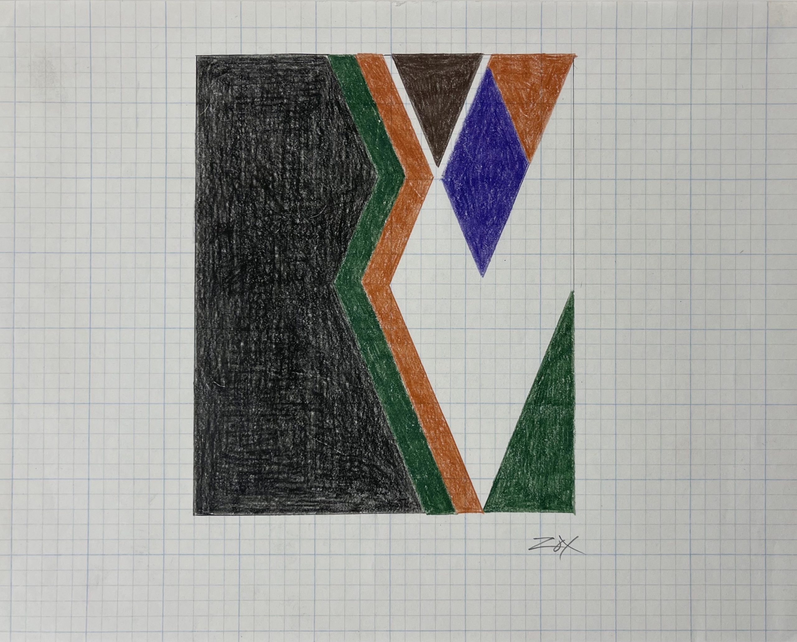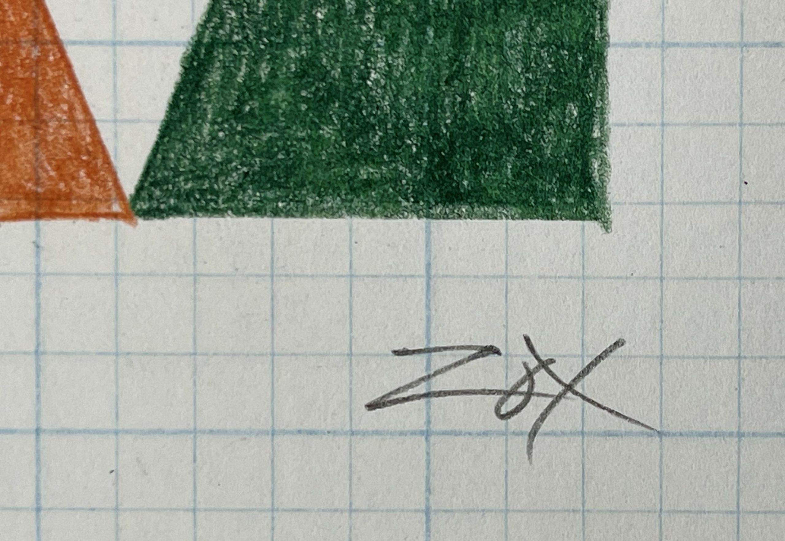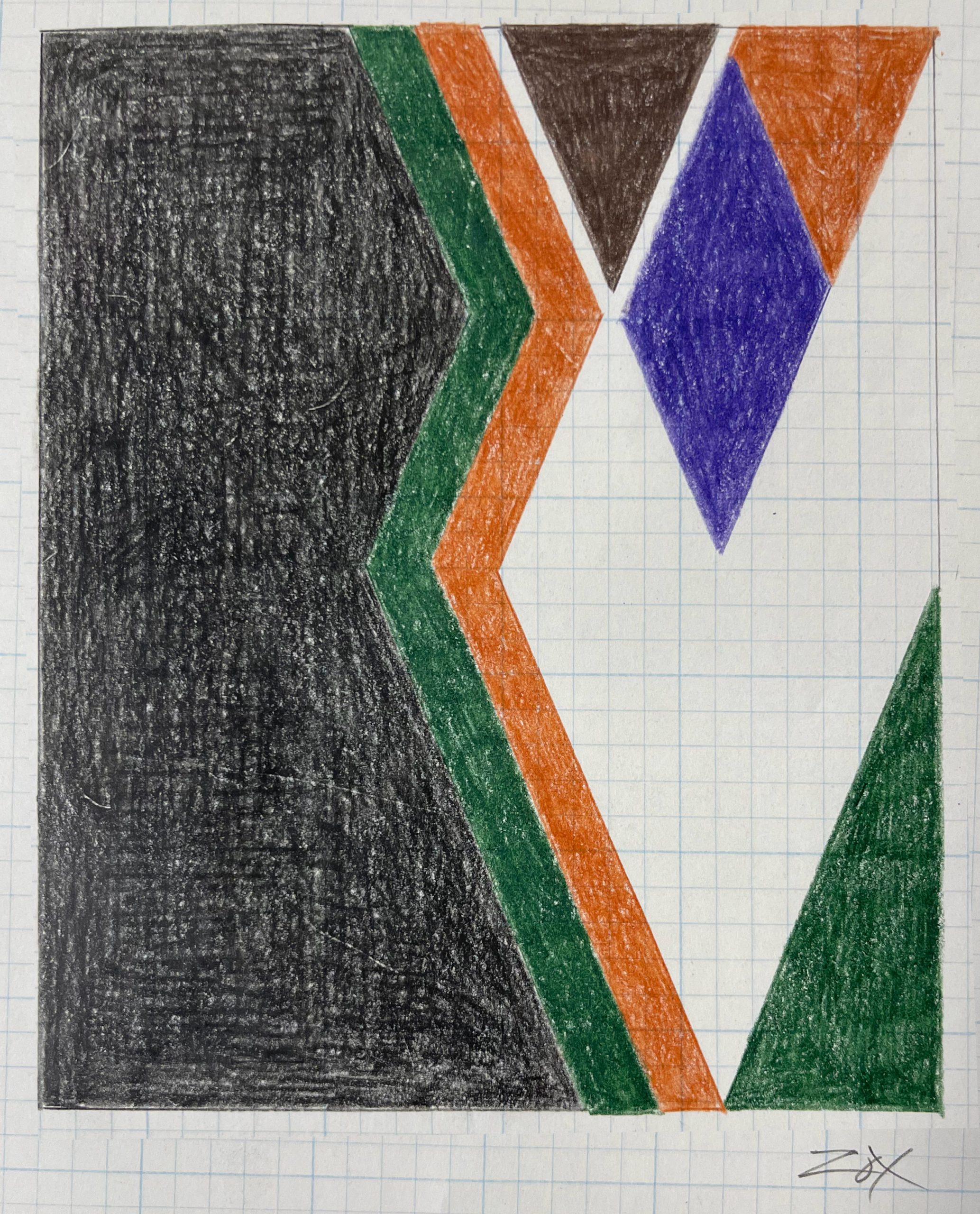 Colored pencil on blue-gridded graph paper